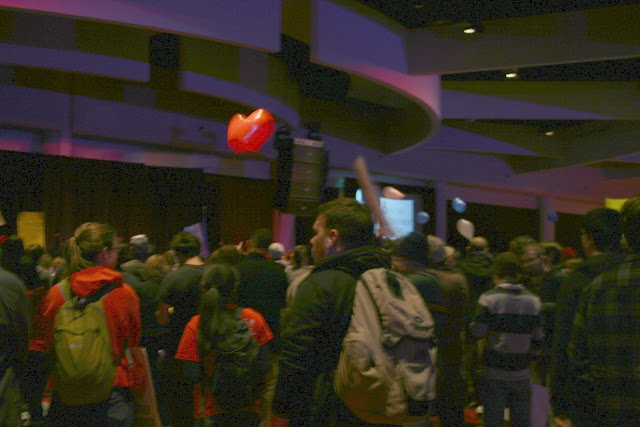 Hearts have been ubiquitous throughout the protest. One of the mass-produced signs has a heart on it. This whole shebang got going on Valentine’s day. They’re red, and I’ve already talked about local associations with that color. The image of the heart bouncing above the crowd with a smattering of balloons struck me. I didn’t, despite ten minutes of trying, get a good picture of it. The one above is the best, and I had to do some post-production on it to correct the lighting. There was something a little surreal, and a touch poignant about the scene. I’m sorry I didn’t manage to capture it.