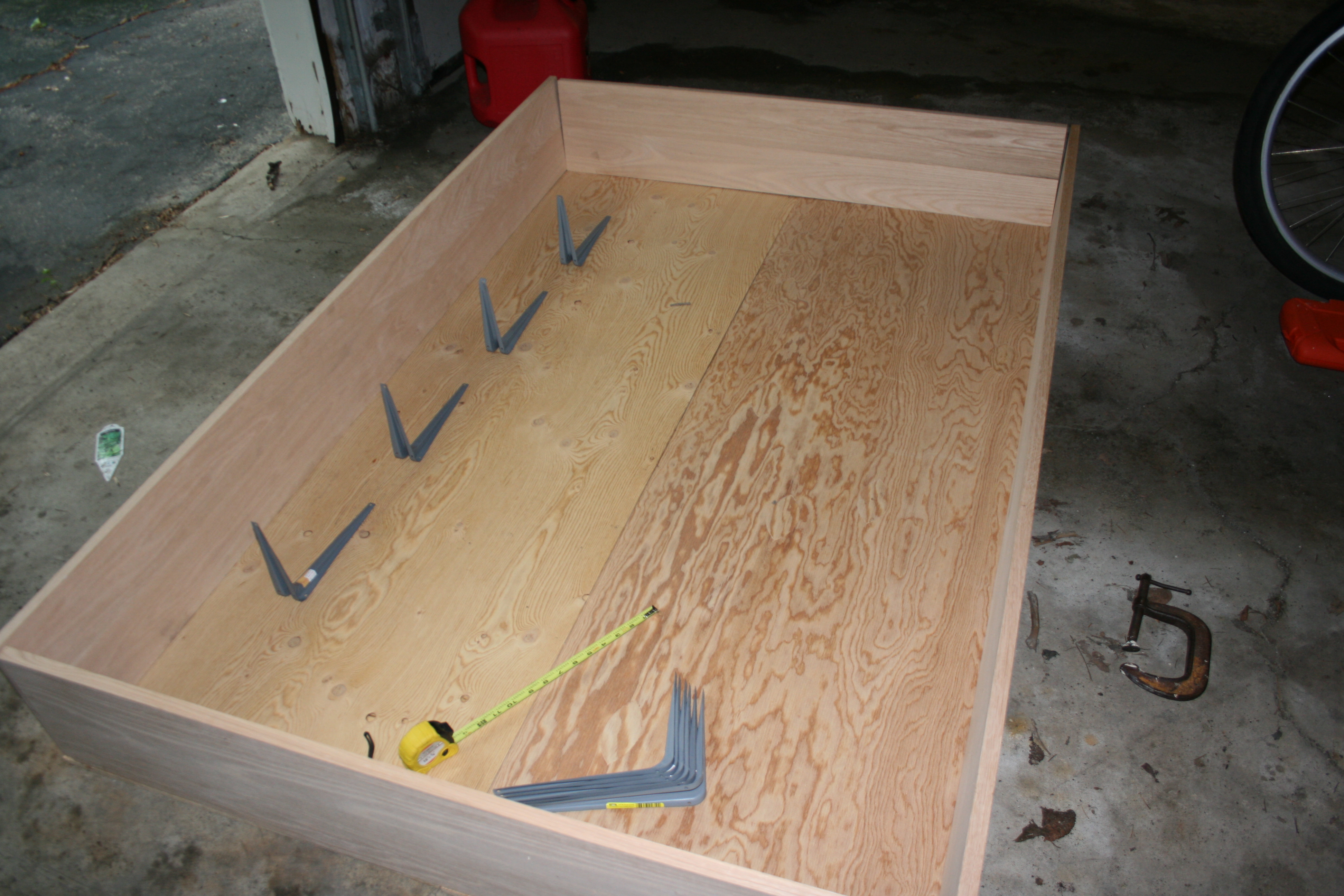 After that, it was time to screw everything together. Which meant redoing most of the drilling, because all the careful visualizing and measuring in the world meant that none of my pencil marks lined up, none of my drill holes lined up, and, oh yeah, the drill bit I’d used was ever so slightly too small. Make all the libido jokes you want; by the time I was done, I was really tired of screwing.