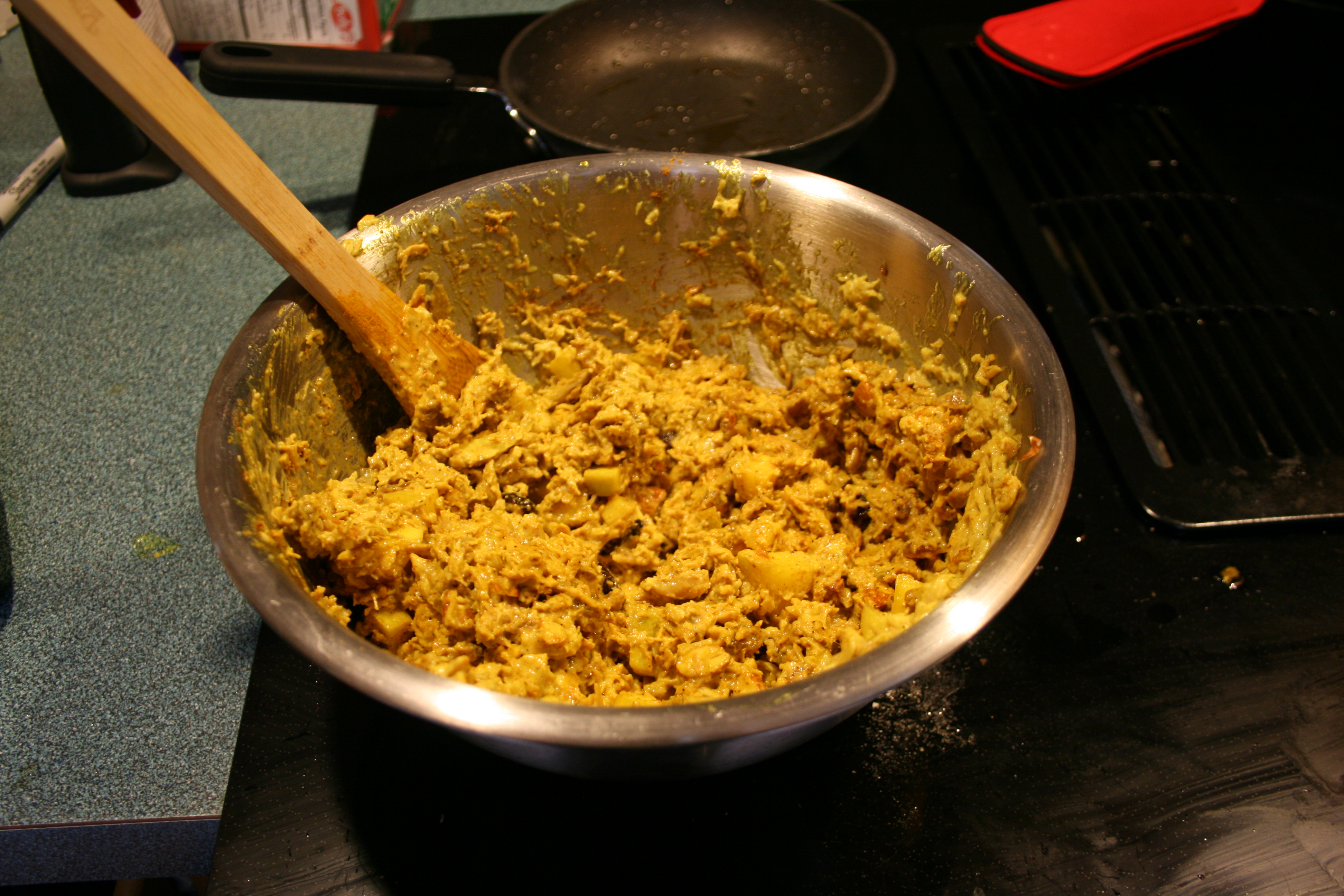Also, since Sylvie (the roommate, not the winner) was the only one to propose a penalty, she got curry chicken salad. In keeping with the pics or didn’t happen custom of the internet, I hereby provide evidence of my punishment.