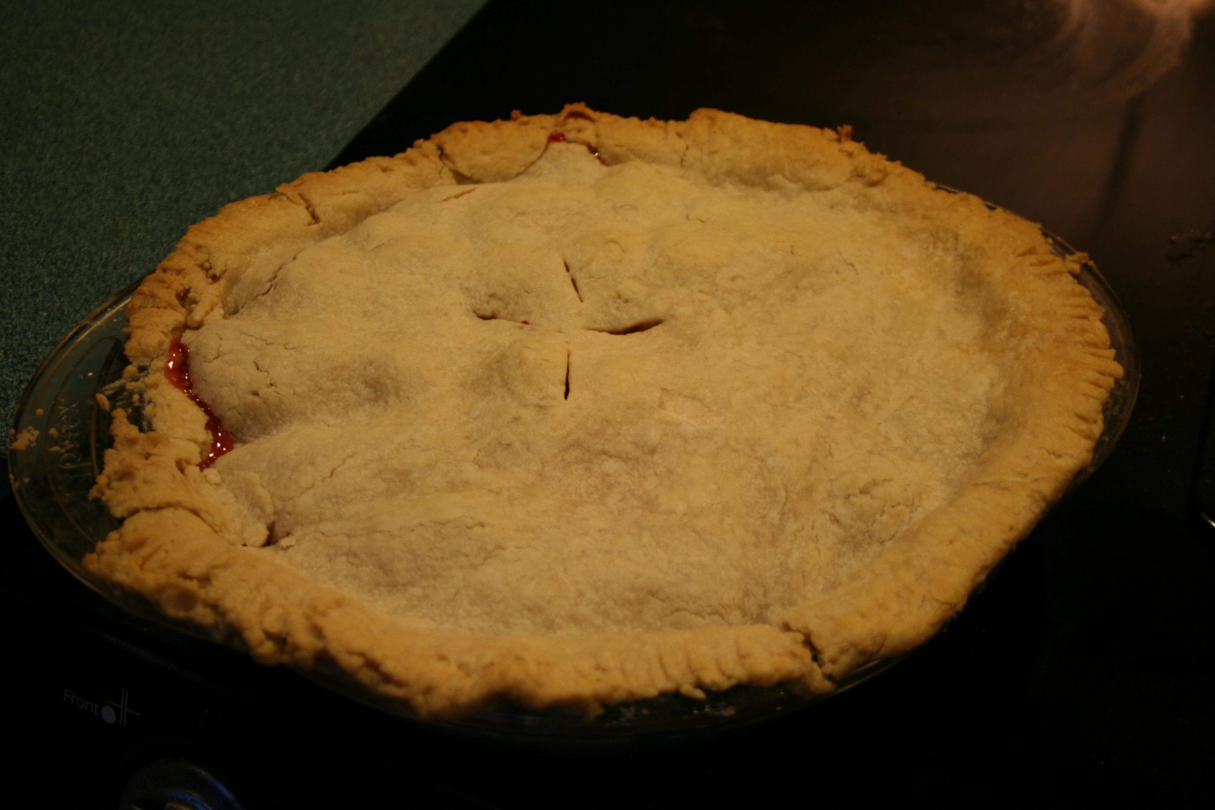 See the goo oozing up in the upper left corner? This pie is done.