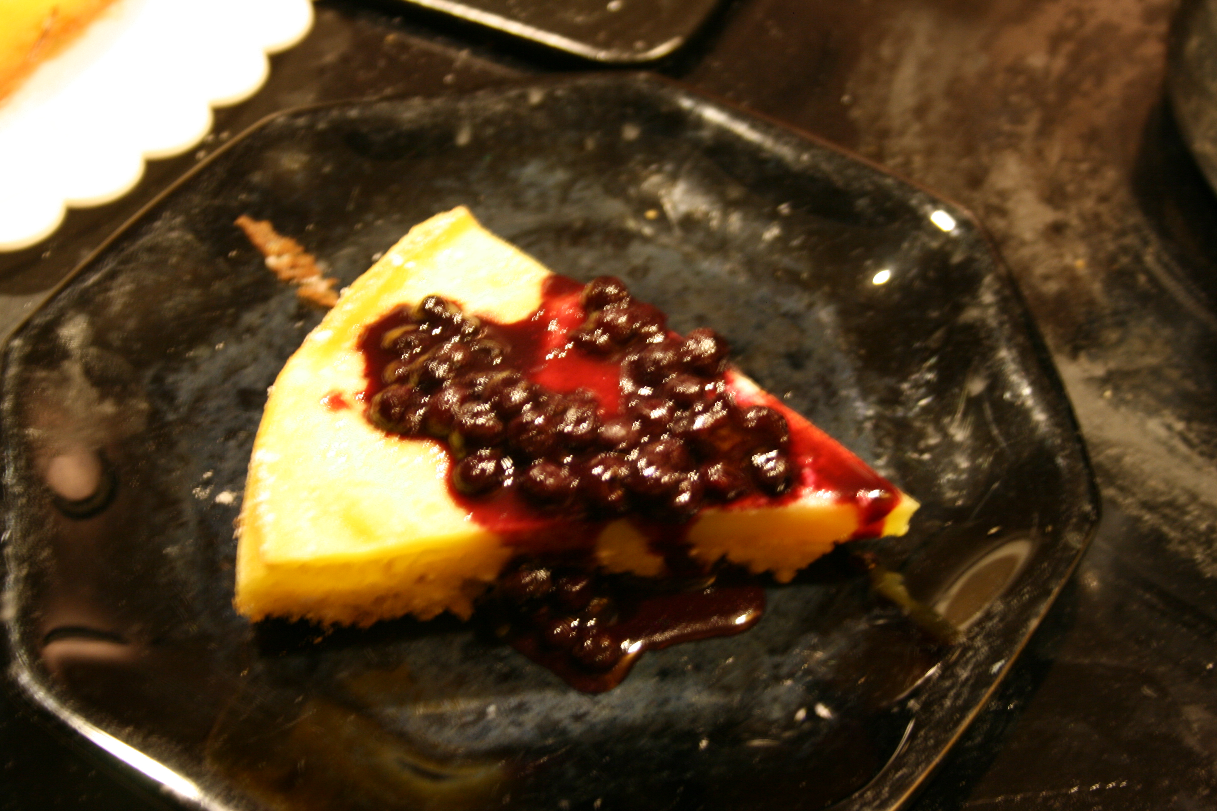 We had frozen blueberries in the freezer. This led to sponge cake with blueberry goo. I just dumped frozen blueberries in a pot, added some sugar, a bit of lemon juice and a dash of salt, and viola, goo.