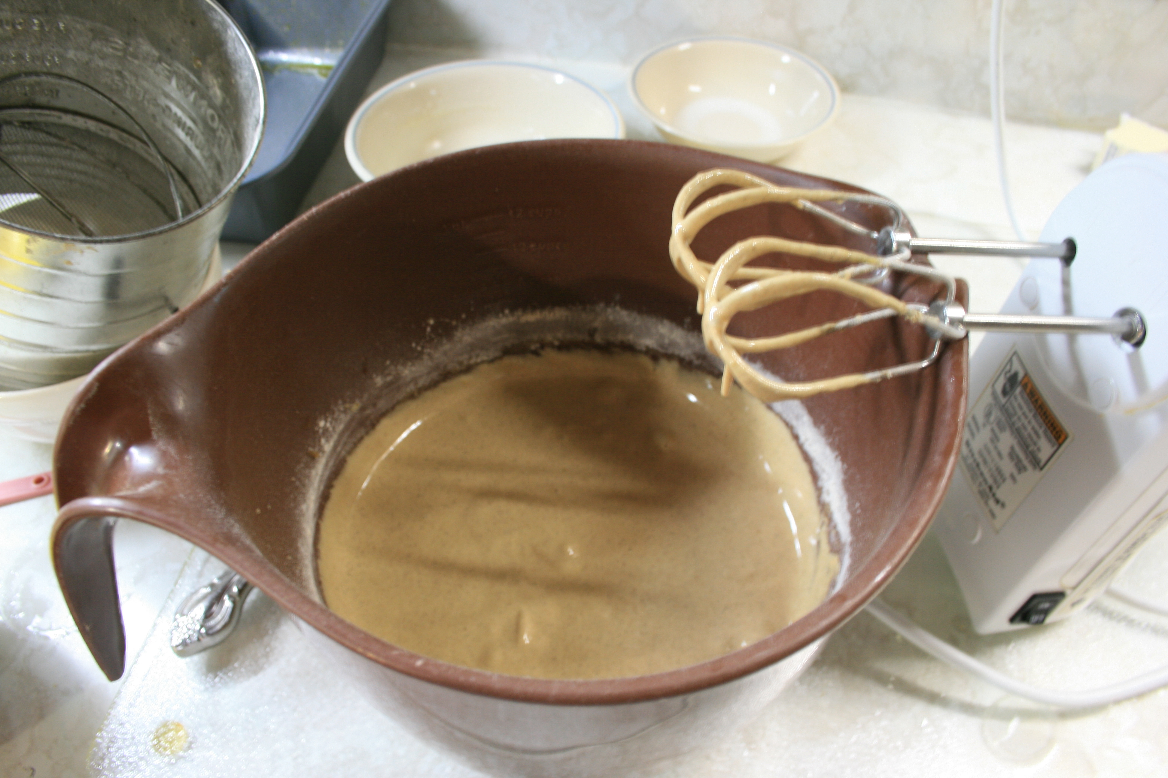 The tea cakes are more self-sufficient in their tasty. I chose the Soft Gingerbread Cake, in part because it looked tasty, and in bigger part because the placement of the recipe on the page made it easy to take a picture of it. Then I used the picture of the recipe to make the cake while I was in Richmond preparing for my sister’s wedding.
