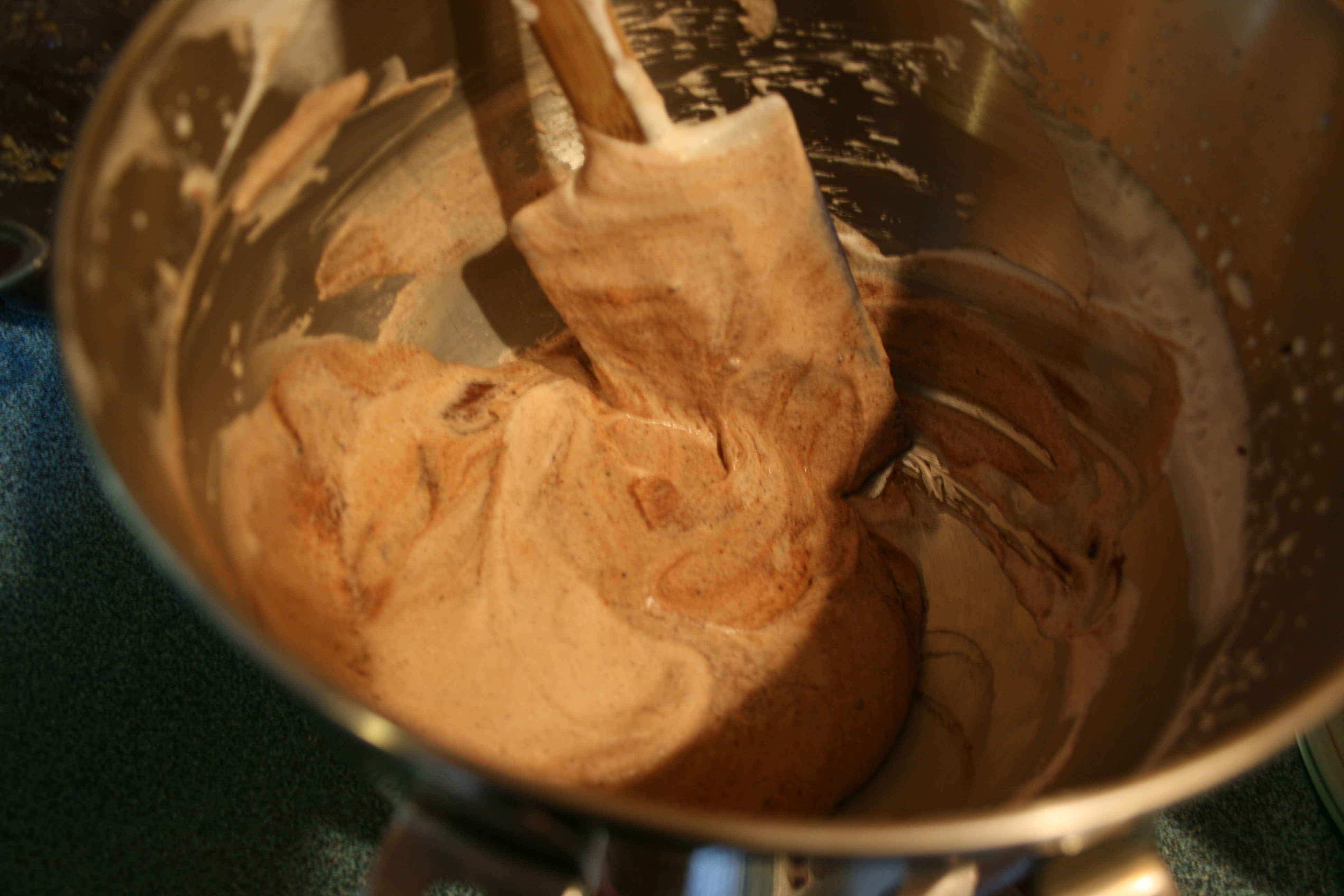 After I mixed the chocolate portion into the rest of it, I made the executive decision that it was way too runny and put it back under the whisk to turn into something more like cream and less like soup. Final product: