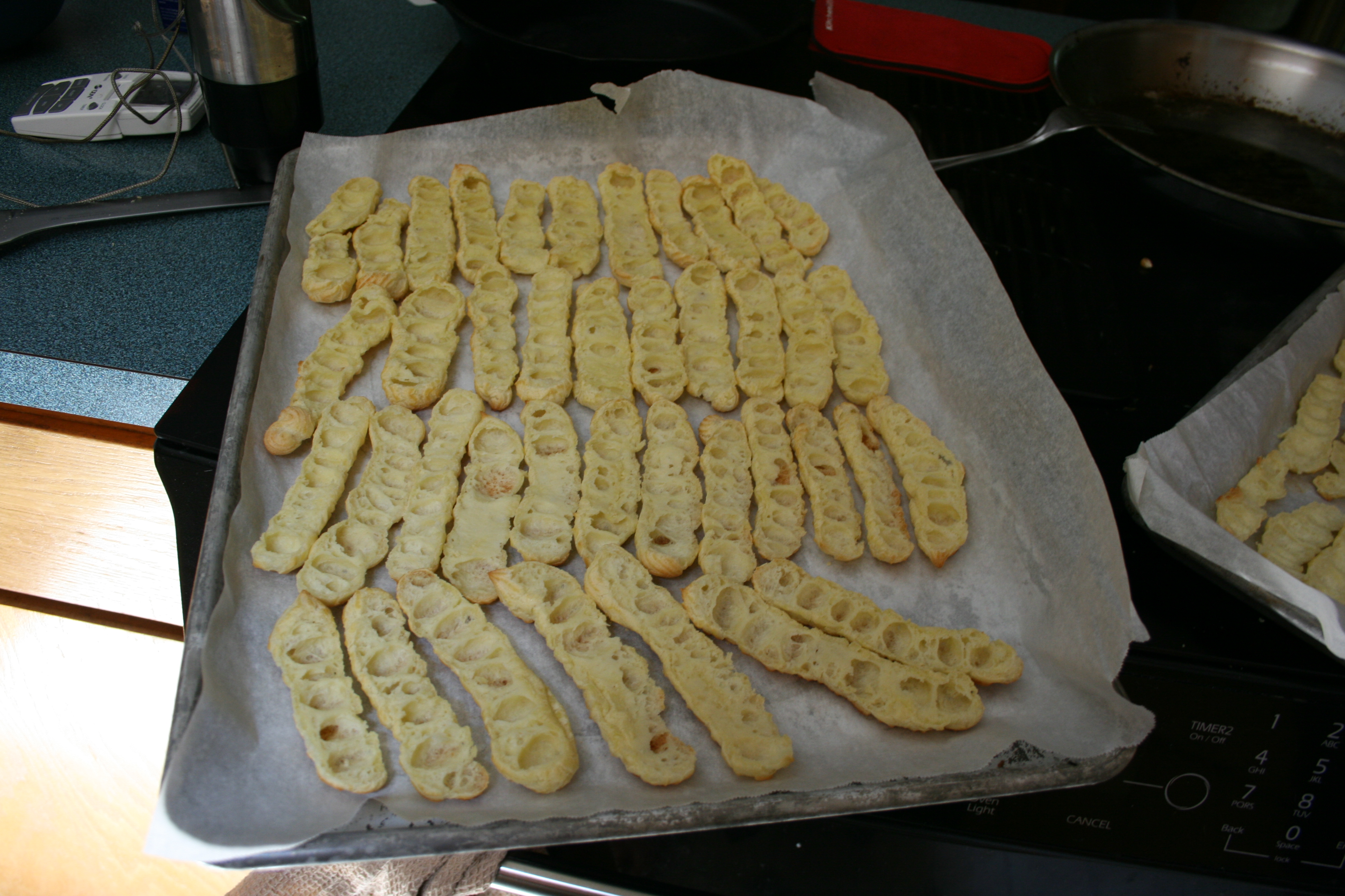 I’m not sure I’d made these again, just because there was such a process involved for something that doesn’t really keep well. However, I will almost certainly pilfer the chocolate cream recipe for something else in the future, and making pâte à choux for the first time was a good experience. Overall, it was nice to have a project that was new to me, and where the drama and adventure came from the circumstances around the cooking, not the craptastic recipe guidance.