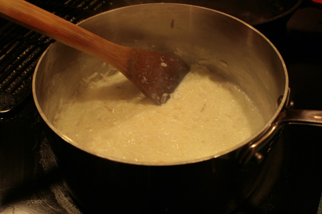 Cook some rice in milk. This is where I started to suspect something was up because this was about a quarter the amount of rice I usually use for rice pudding, and this cookbook usually makes way, way more than what I’m used to. But I carried on, like you do when you’re in an abusive relationship with your cookbook.