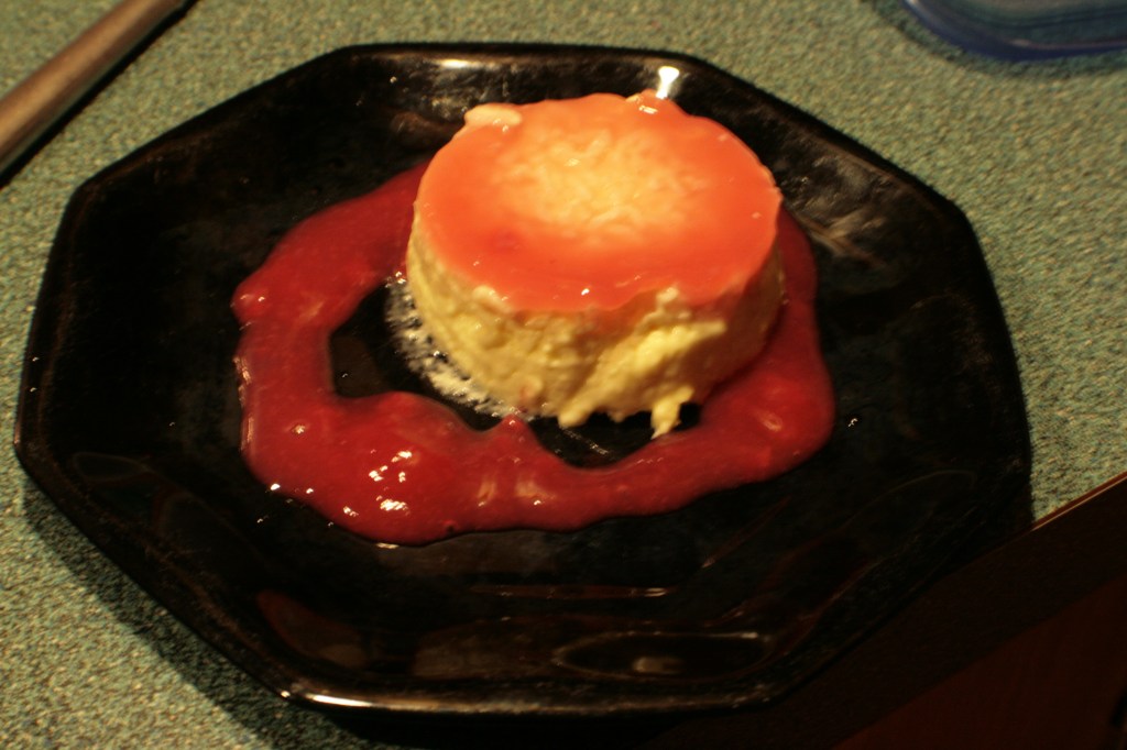 That was basically it for the sauce. Some of it got mixed with some gelatin to go in the bottom of the pudding ramekins, and then put into the fridge to set up.
