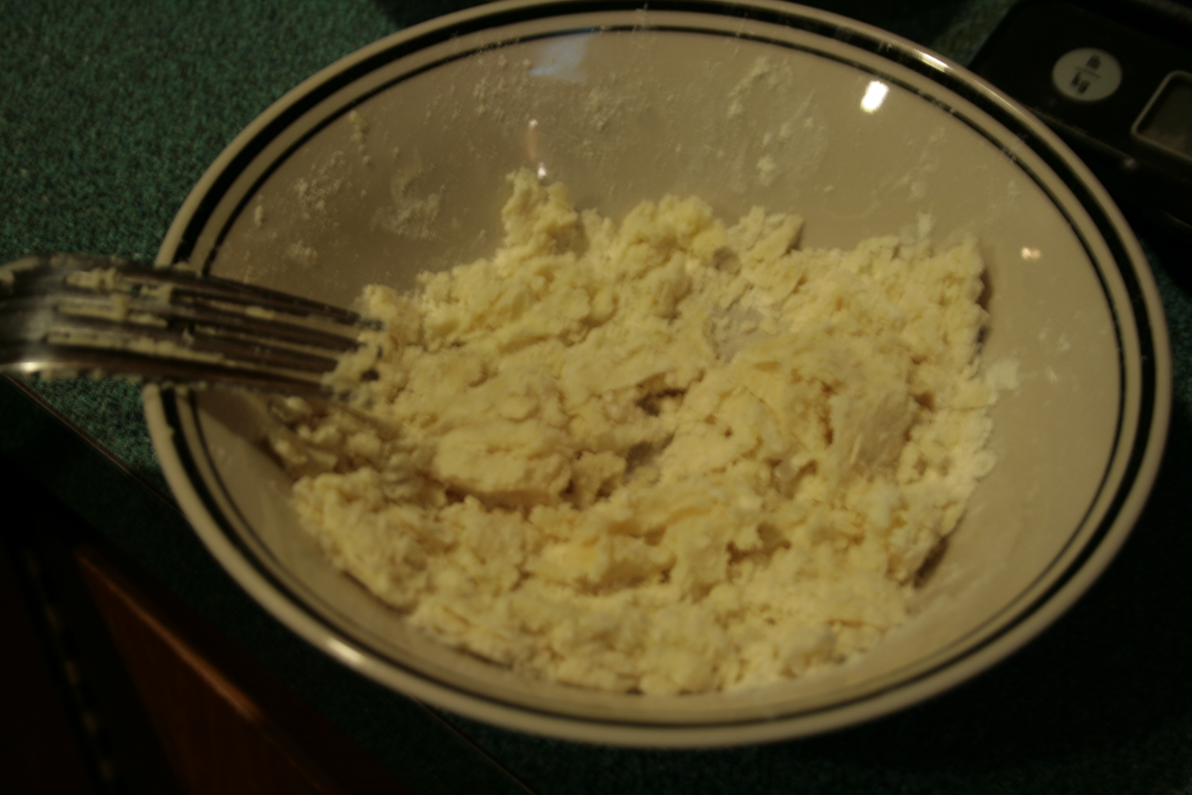 This is about how much I mix dry ingredients with butter when I’m making pie crust, which means this was dough more than anything I’d classify as “paste.” But it wasn’t going to get pastier without adding more flour.