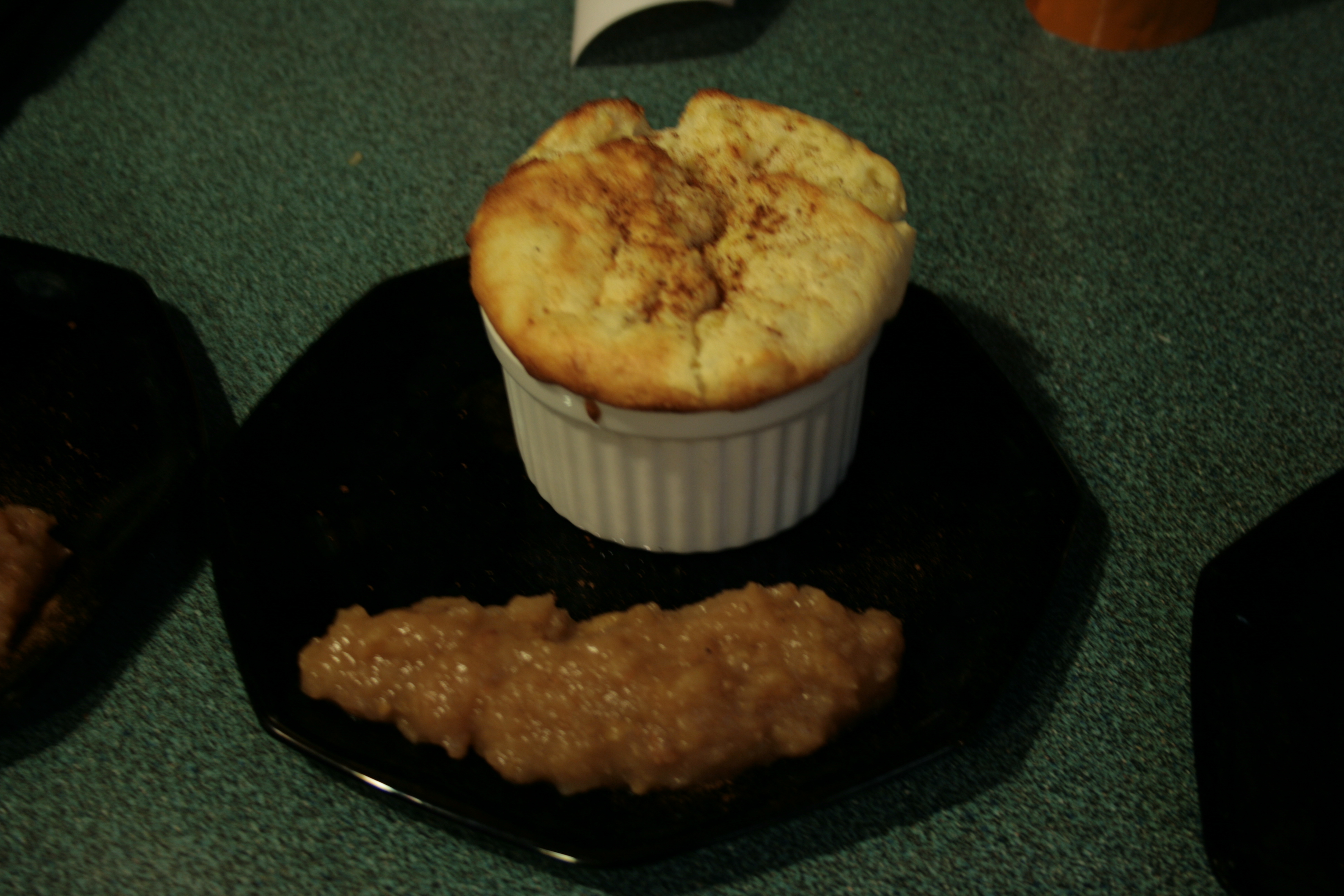 Despite the confusing gloop, these turned out pretty well. They were tasty, and the applesauce was a great pairing. These weren’t worth waxing rhapsodic over, but given how easy (and relatively fast) they were to make, I wouldn’t rule them out as a go-to if I were trying to impress somebody. Then again, I’ve made souffles I was more impressed by, so I’d probably go back to one of those recipes first.