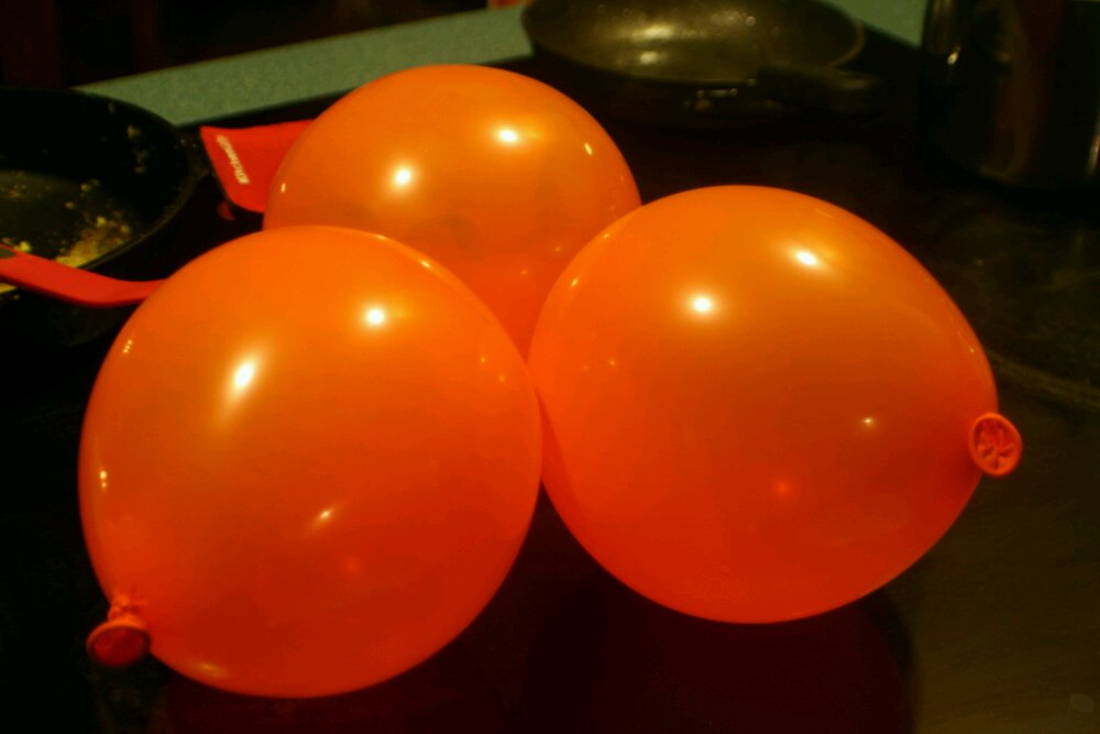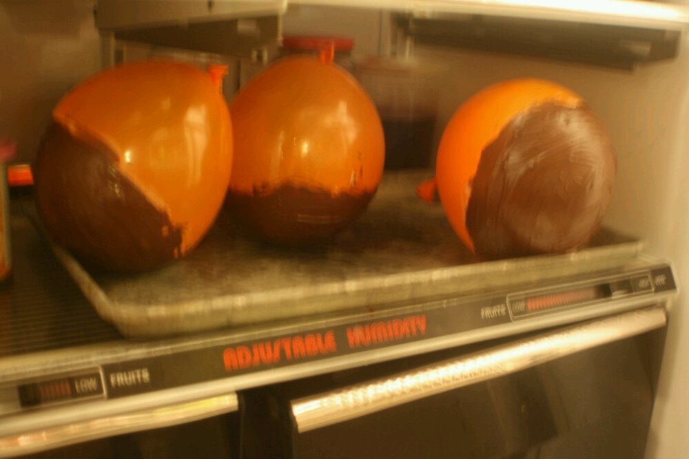 The balloons were the wrong size and shape, so these were destine to be more bowl than goblet, but I was ok with that. Then I stuck them in the fridge to set up, and swapped texts with the impending house guest to make sure we’d have strawberries and cream for the rest of the dessert.