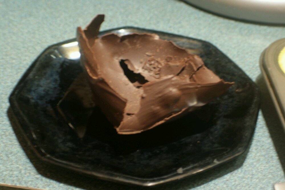 When you read about tempering chocolate, most explanations say it does things like “gives the chocolate a pleasant bite,” and “pleasing gloss.” What they mean is that it makes the chocolate firm enough to support itself when shaped. Unlike my chocolate-chip goblets.