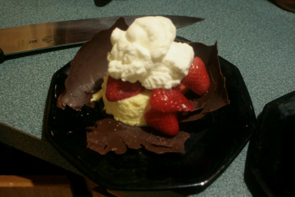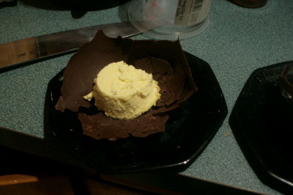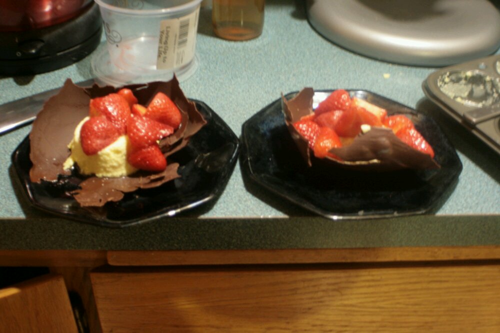 Next up was making the chocolate goblets. This is the first doing froofy candy-style things with chocolate I’ve ever done. Going in, there were a few things I knew, even before the cookbook told me: