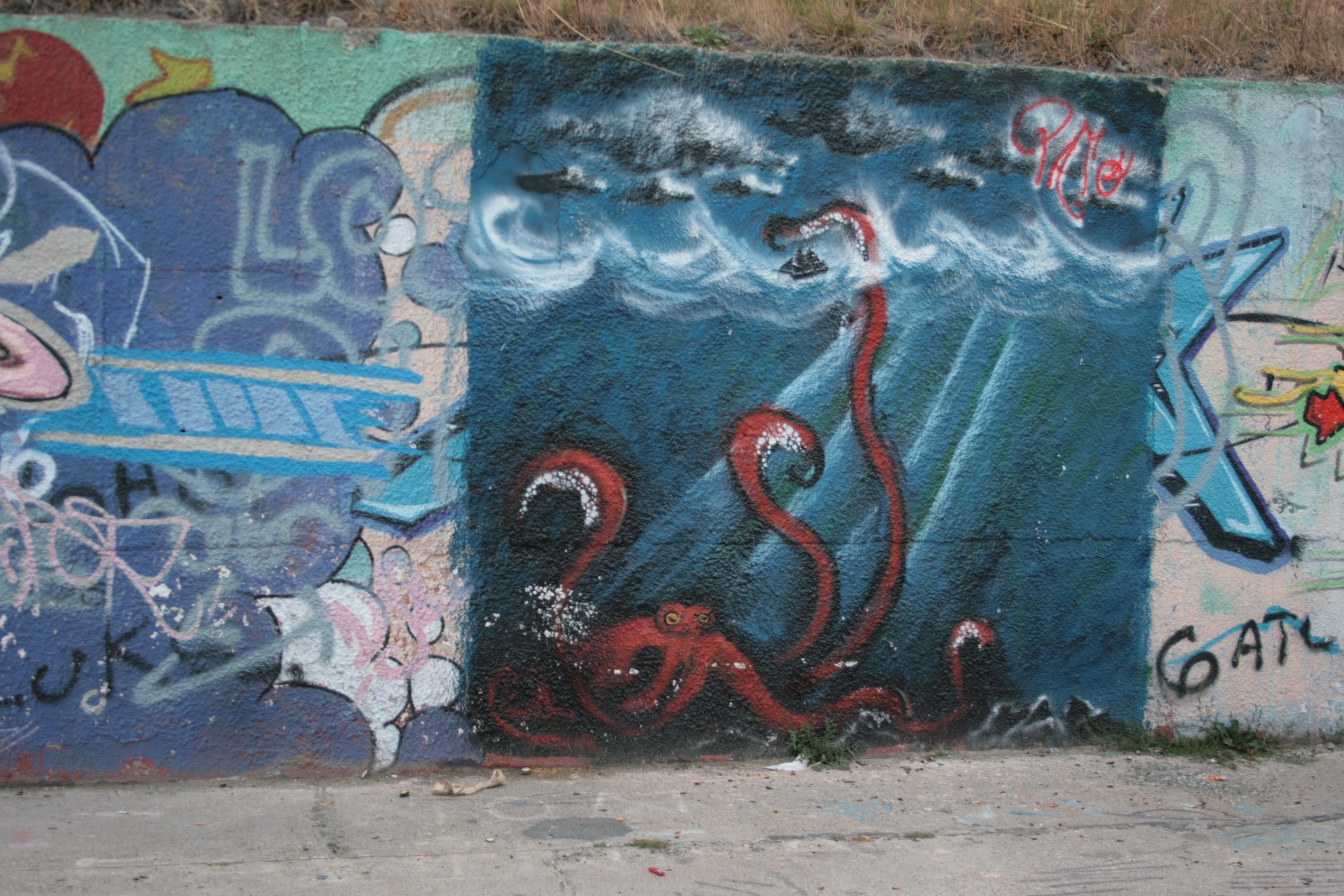 We had our last day in Buenos Aires for a bit. You didn’t really like Buenos Aires, so that was okay. We went to check out the planetarium but it’s really just an omnimax theater and the movie was only in Spanish, so that was no good. Instead we went to the botanical gardens, which was quite pretty. I took a bunch of pictures. Then we got on the overnight bus to Bariloche, and I continued my enthusiasm for street graffitti. You see dirty sings of bad maintenance, I see fantastically surreal, quality art.