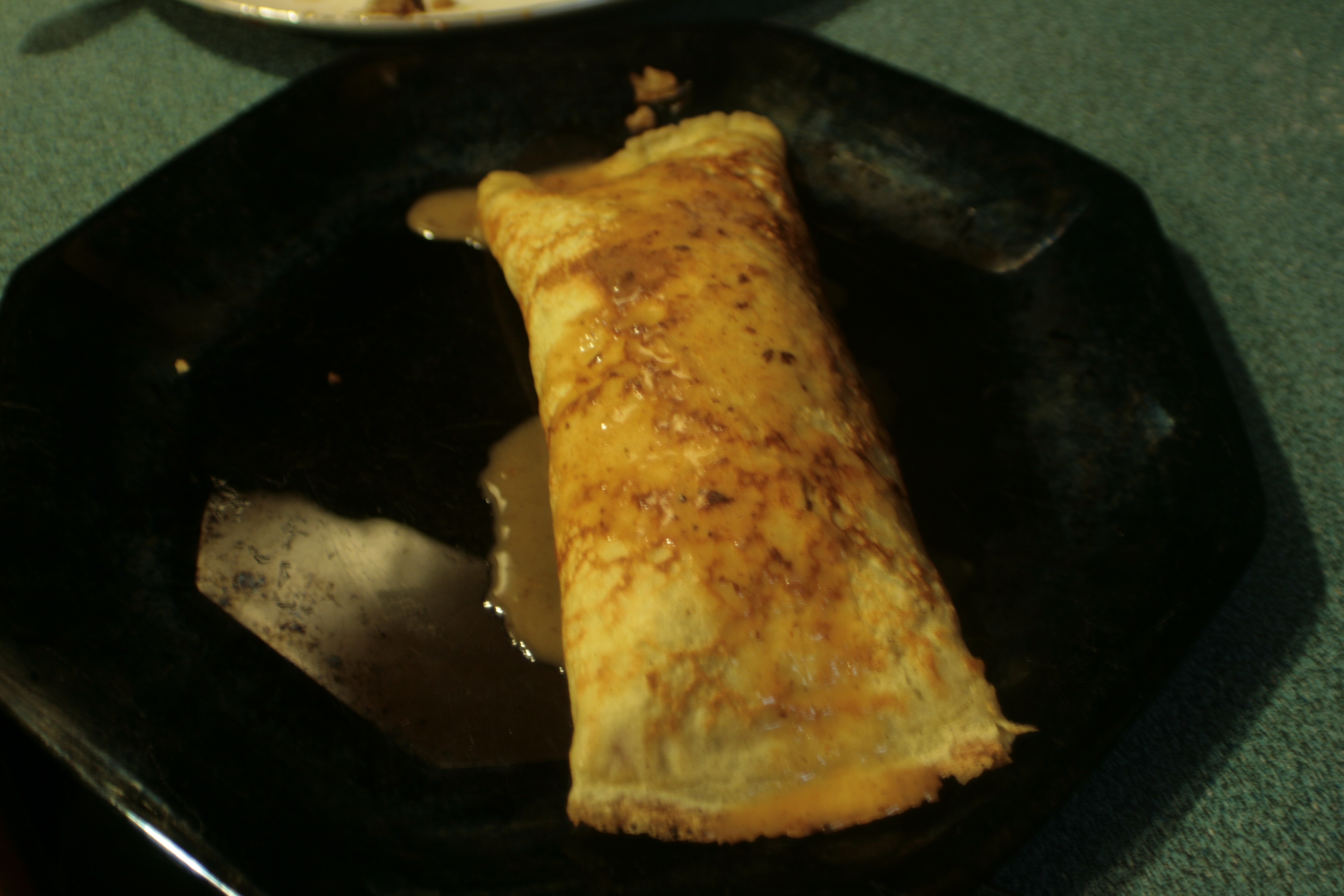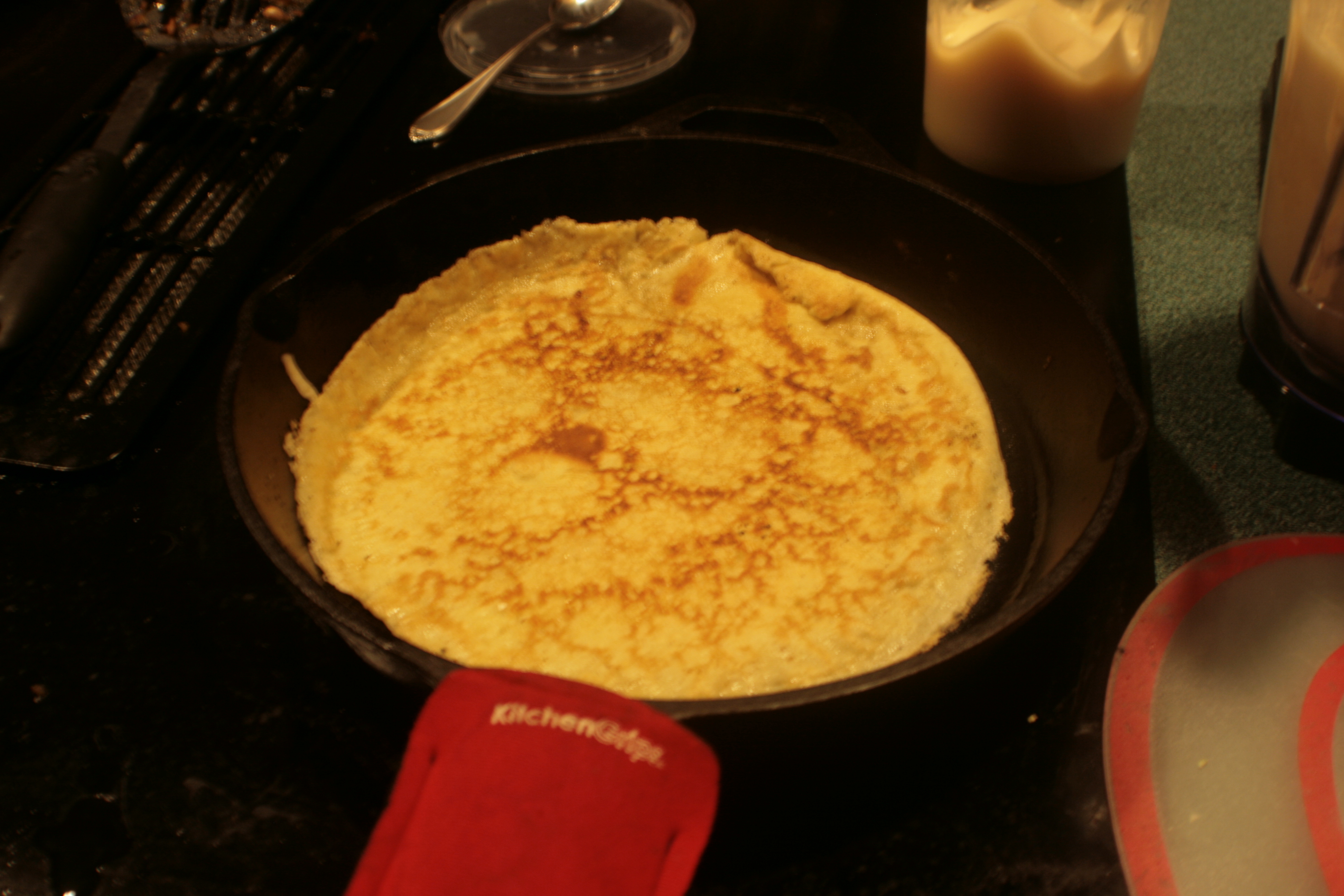 That, ladies and gents, is what a French burrito wrapper looks like just before it comes out of the pan. Mmmm.
