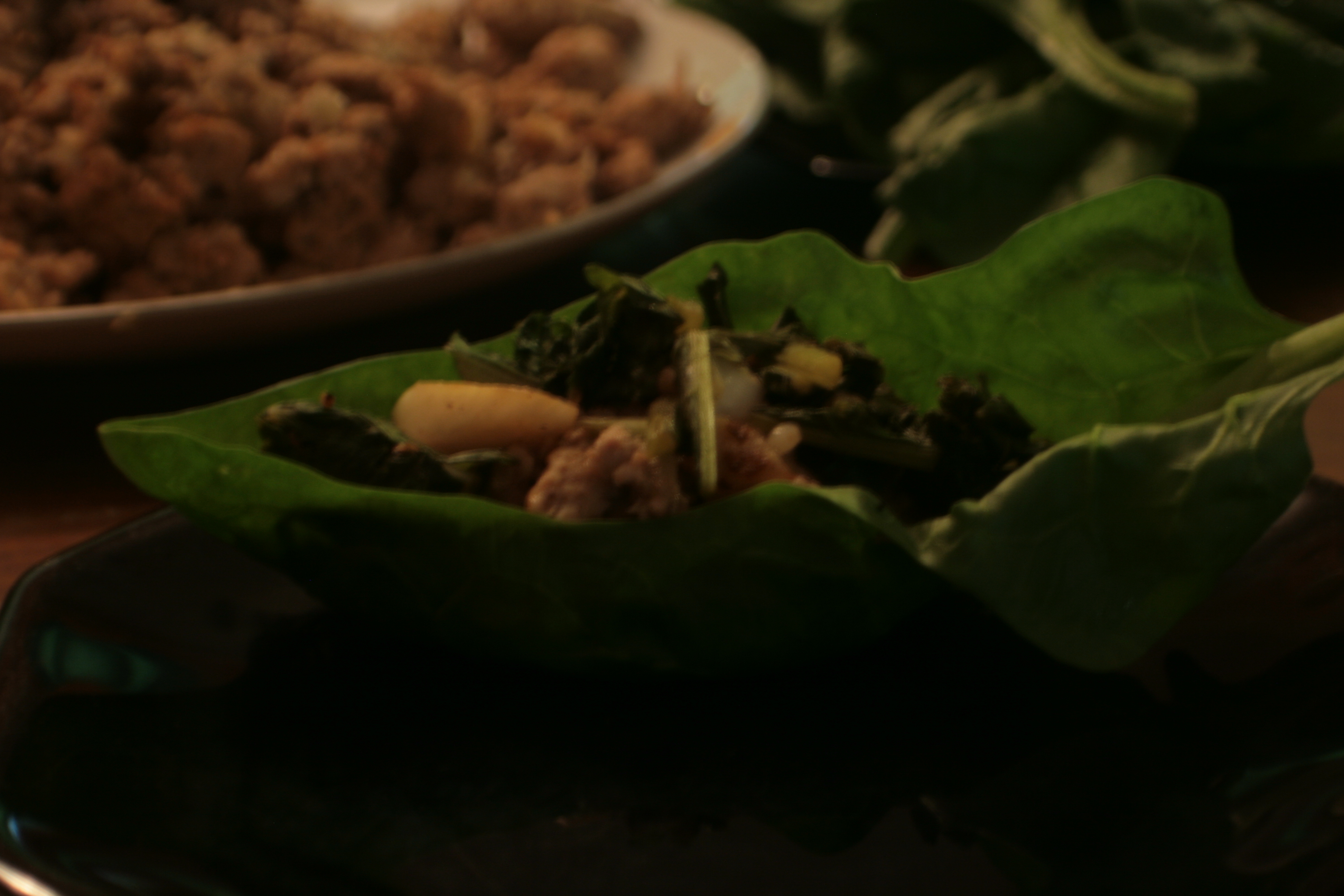 This is what the wrap looked like assembled. Actually, this is the only wrap that looked that nice, since most of the lettuce leaves were too small or torn to make good wraps. But this one, let me assure you, was mega-tasty.