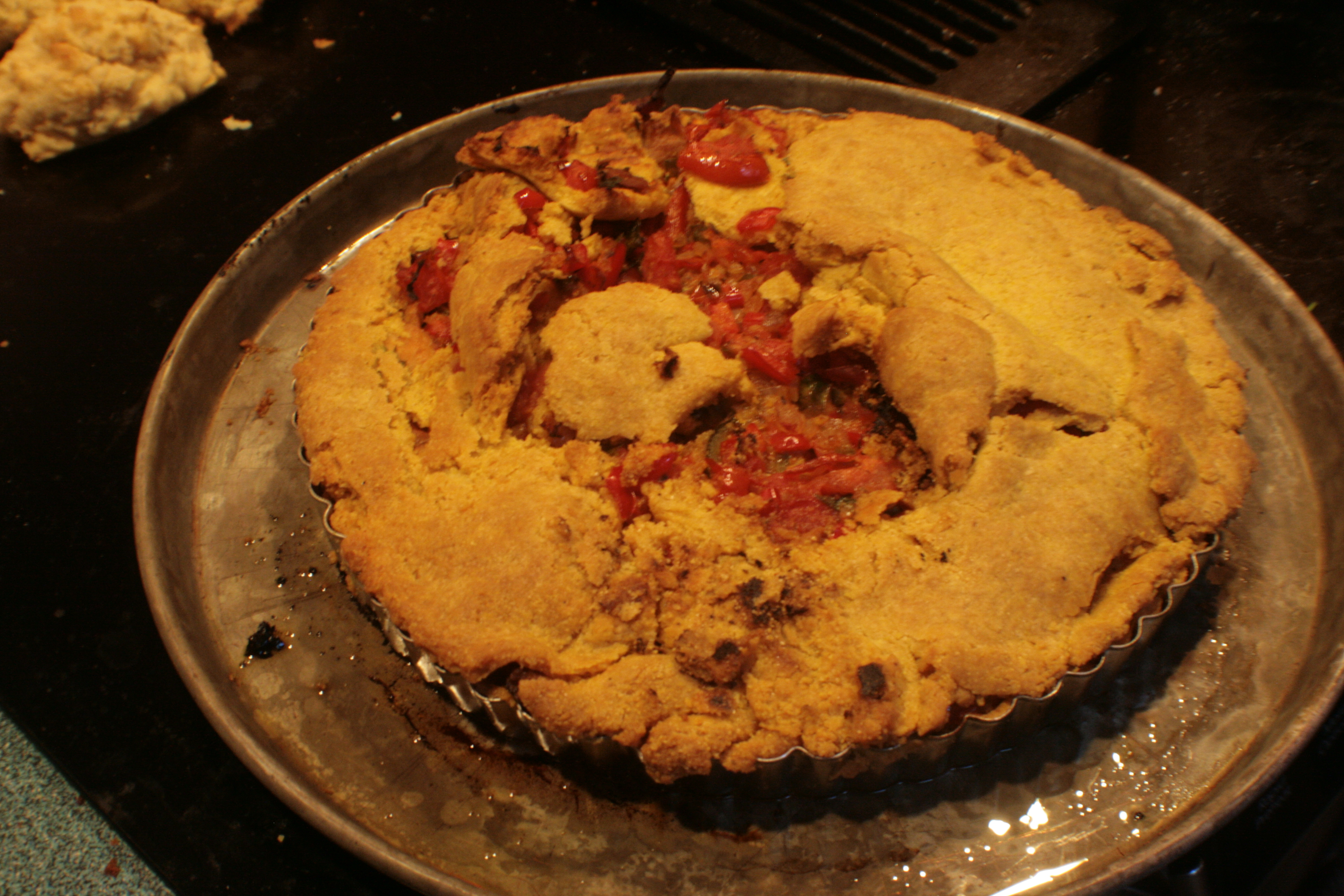 What do we remember from our previous discussion of tart shells? If you said, “They come in two peices, with an outer ring that slides up from the bottom,” you might be able to suspect what happened next.