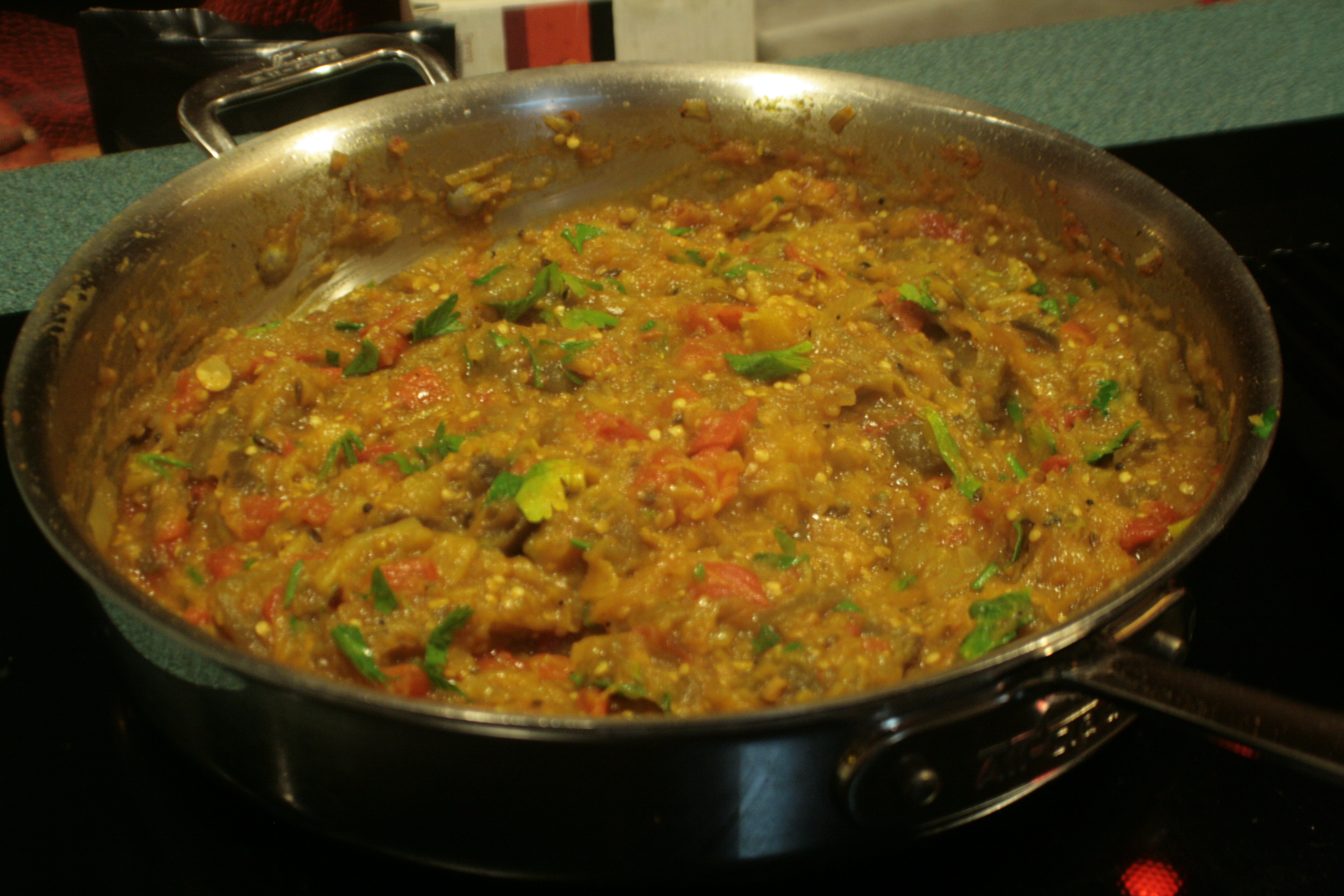 Mmm, curried mush. And that’s basically what it is. I wound up adding a bit of cinnamon and chicken stock to it, just because upon tasting I decided it needed something to round out the flavors a bit – the eggplant and squash weren’t quite working together as team players.