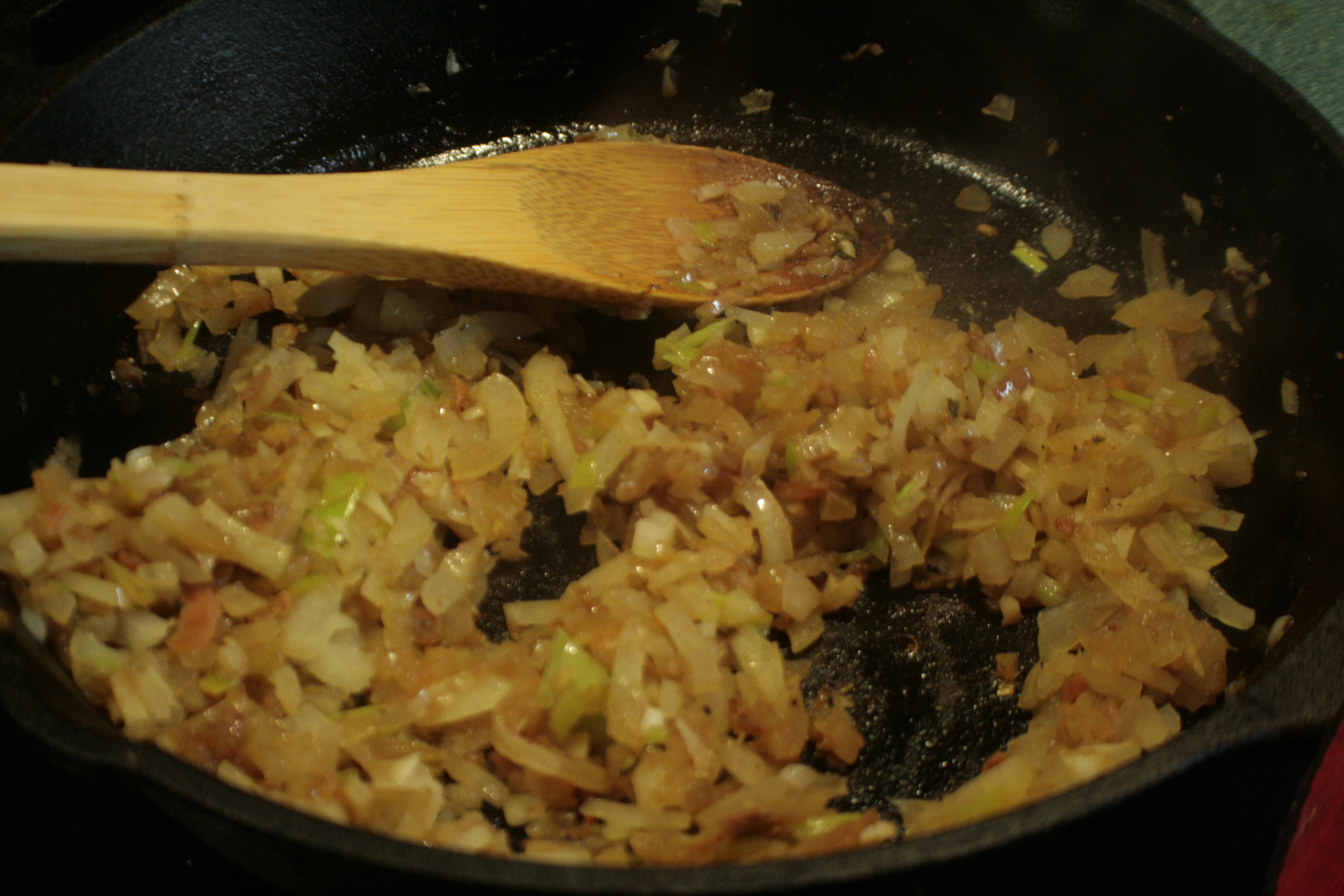 The recipe calls for making a broth by boiling the veggies with the chicken. Boiling brats struck me as…unappetizing. So I decided to caramelize things before throwing them into the broth to cook down and get tasty.