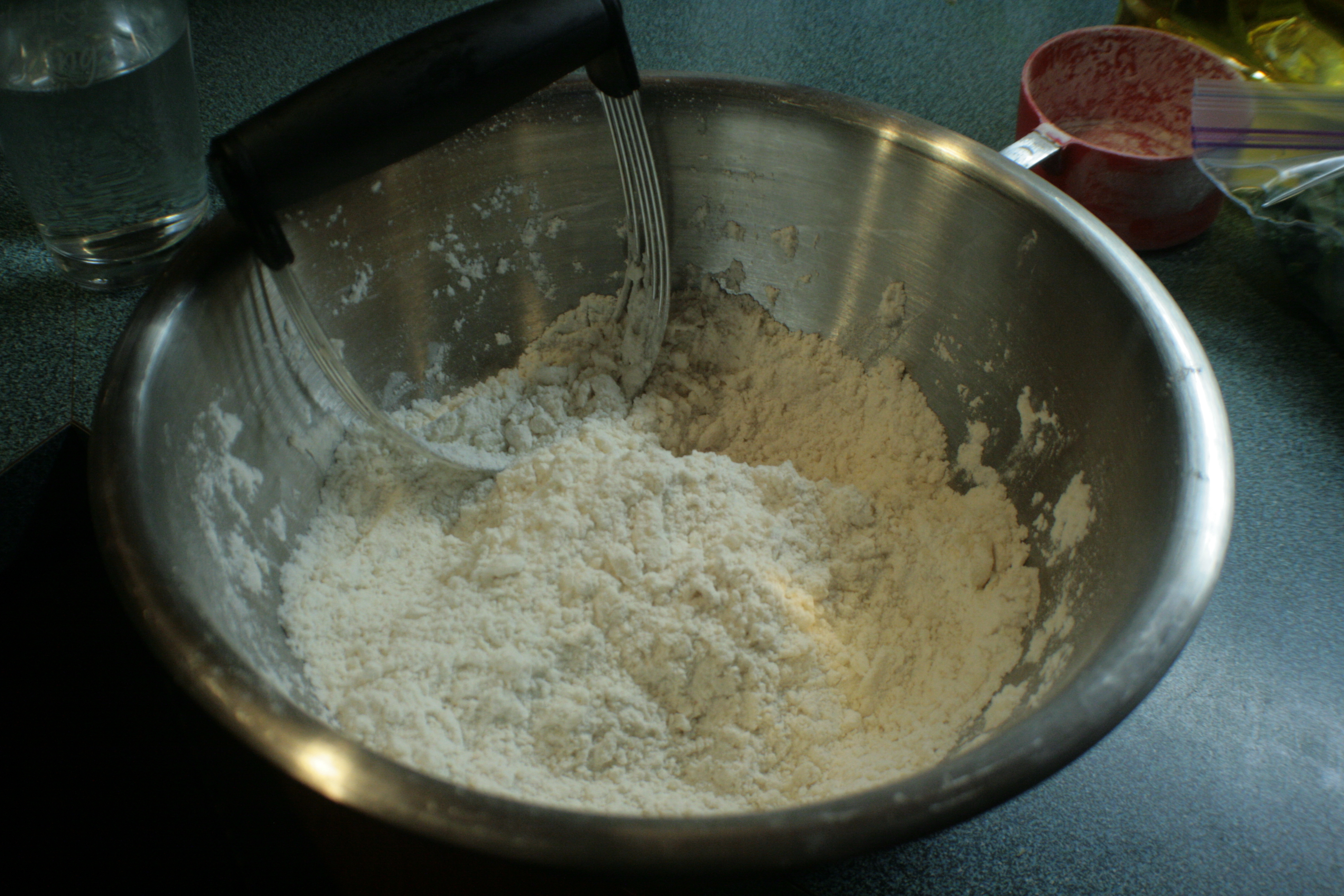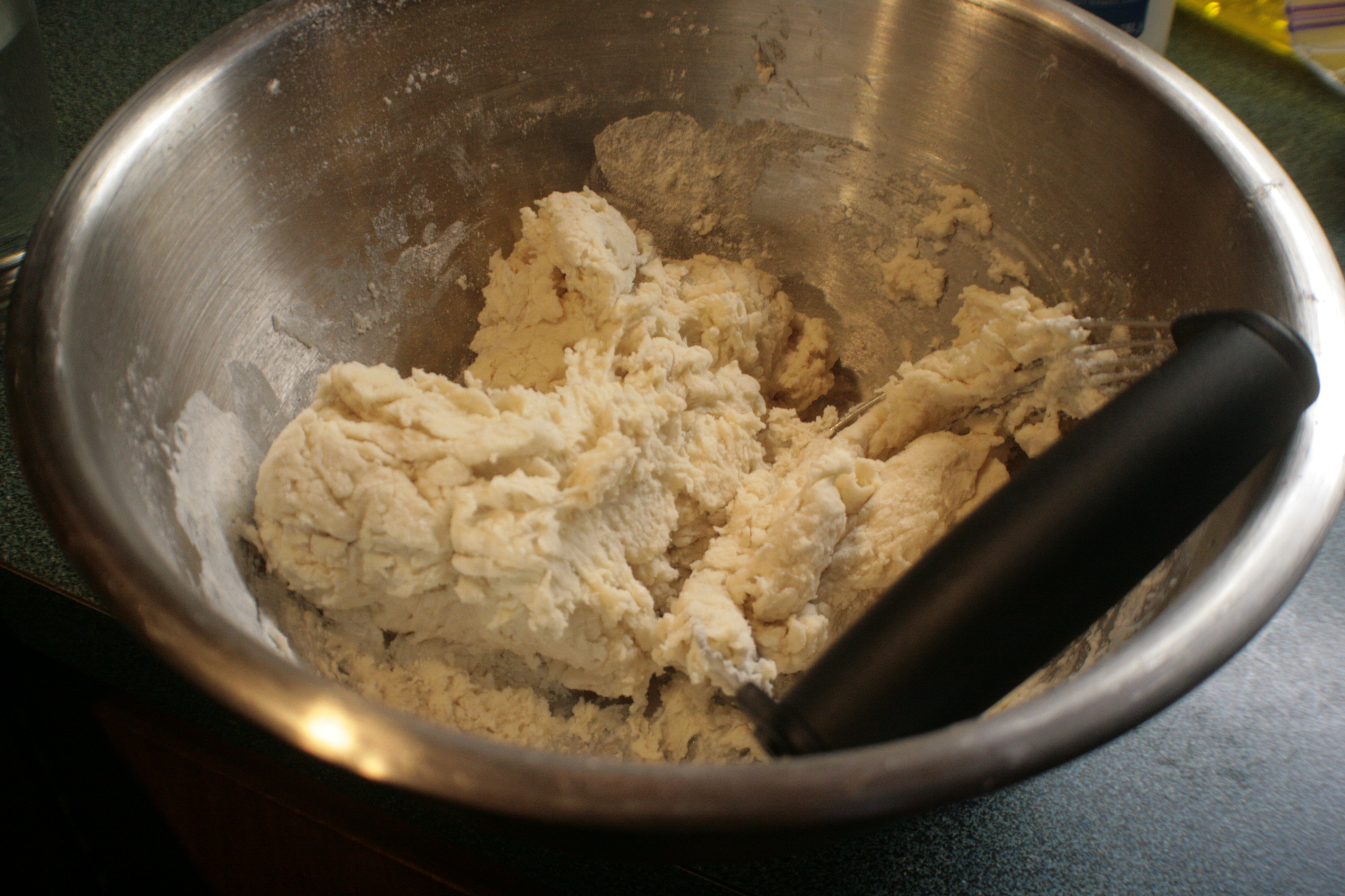 That’s what the dumpling dough looks like before you add the liquid ingredients. If you’re thinking “Wow, that looks just like biscuit dough at that stage,” then, yeah. It pretty much is.