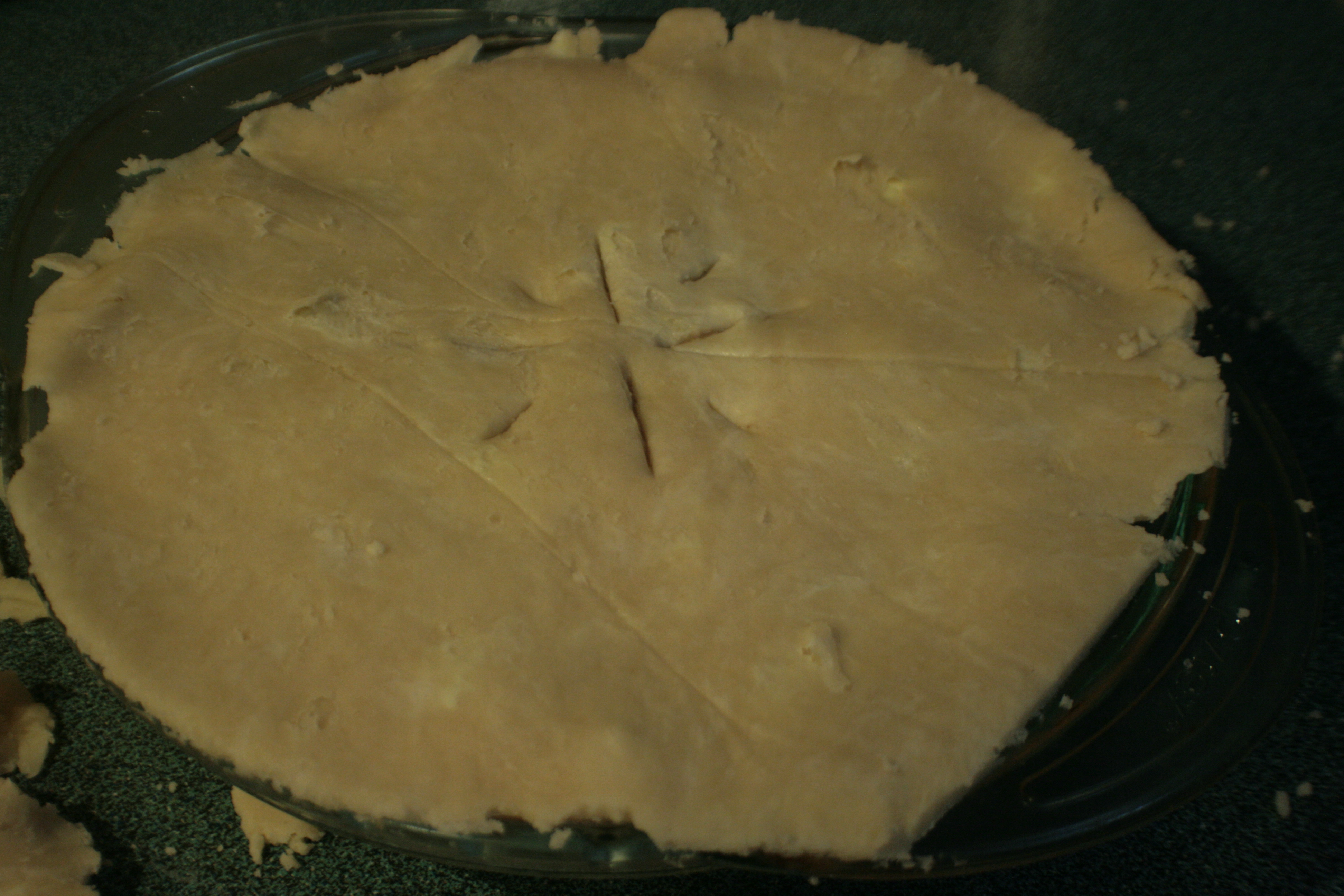 For the crust I used the same recipe I’ve blogged about before, but instead of just doubling it (top and bottom) went ahead and upped it 2.5x. That gave me more dough than I needed, but avoided the awkward not-quite-enough problem I run into a lot using that pie plate and recipe combo.
