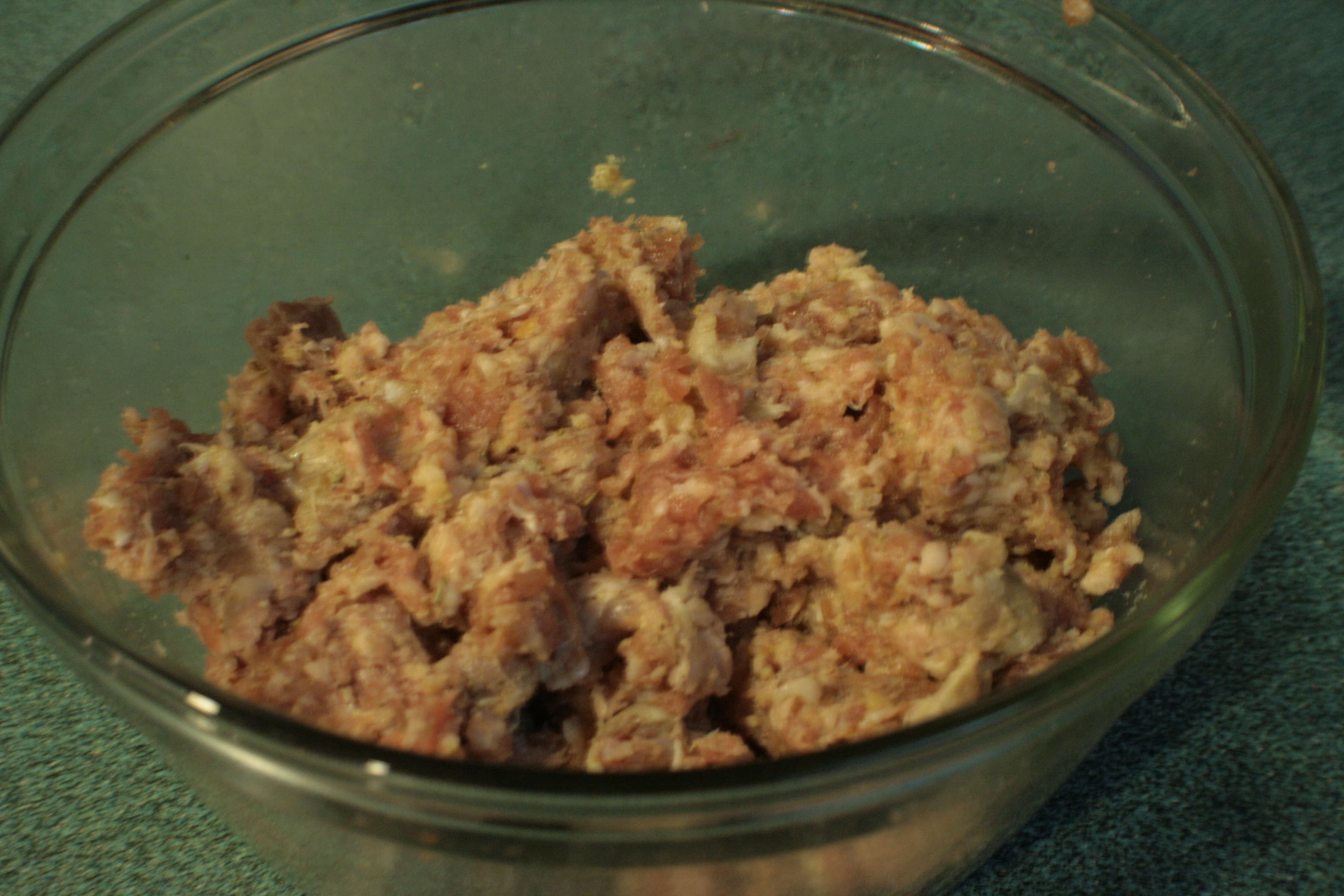 To, as they say on Chopped, elevate the brats, I pulled the sausage meat out of the casings. Then I poured in some breadcrumbs, ground mustard, and vinegar and mixed it all up with my hands. I really like the texture on a brat, and they’ve got a nice, heavy greasiness to them, but this treatment helped pull them into the rest of this dish so it didn’t feel like a slapped a cookout onto my fancy dinner.