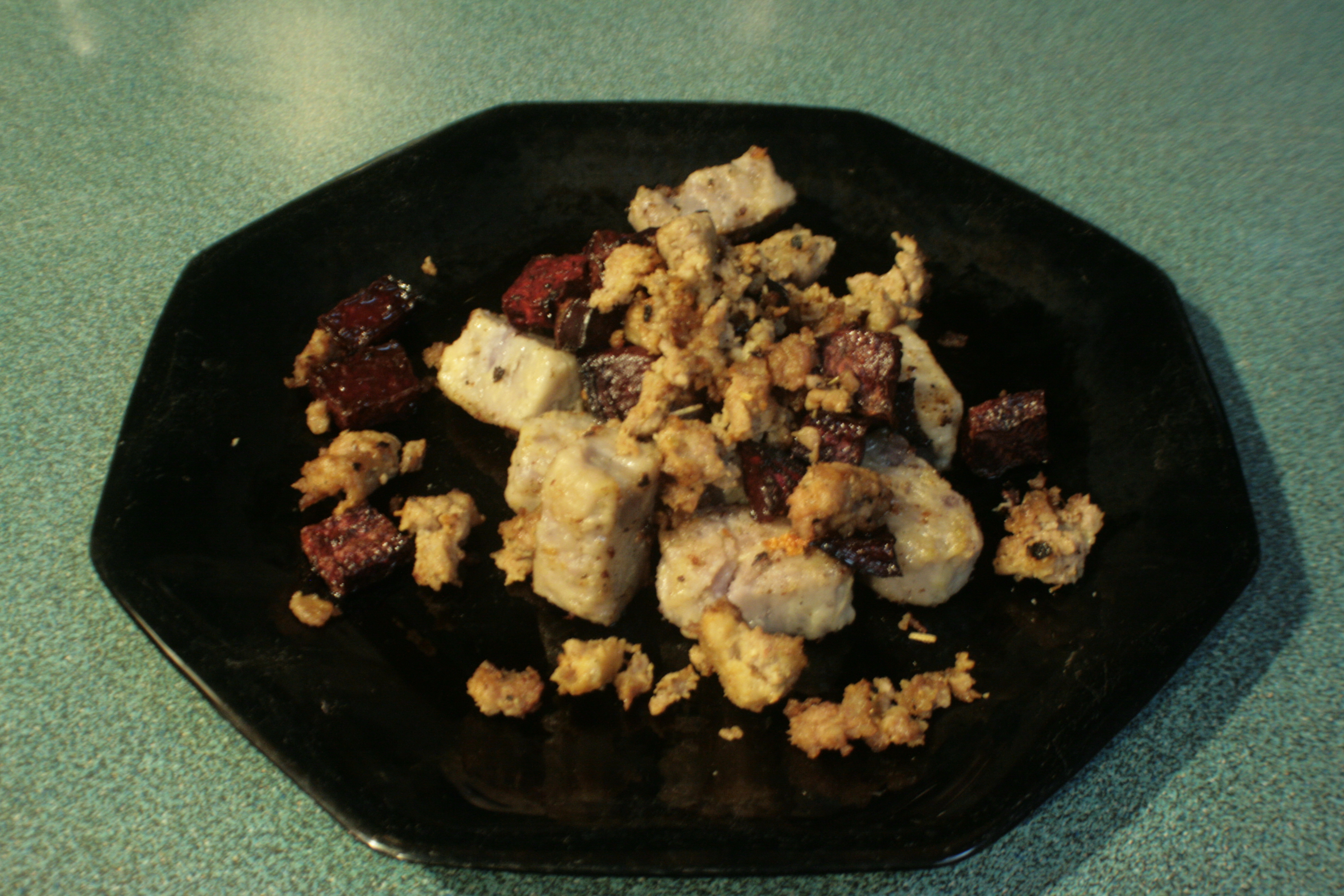 And that is blue potato gnocchi with roasted beets and elevated bratwurst, aka Fancy Dinner. I made a centerpiece and pulled out the place mats and everything. Would do again.