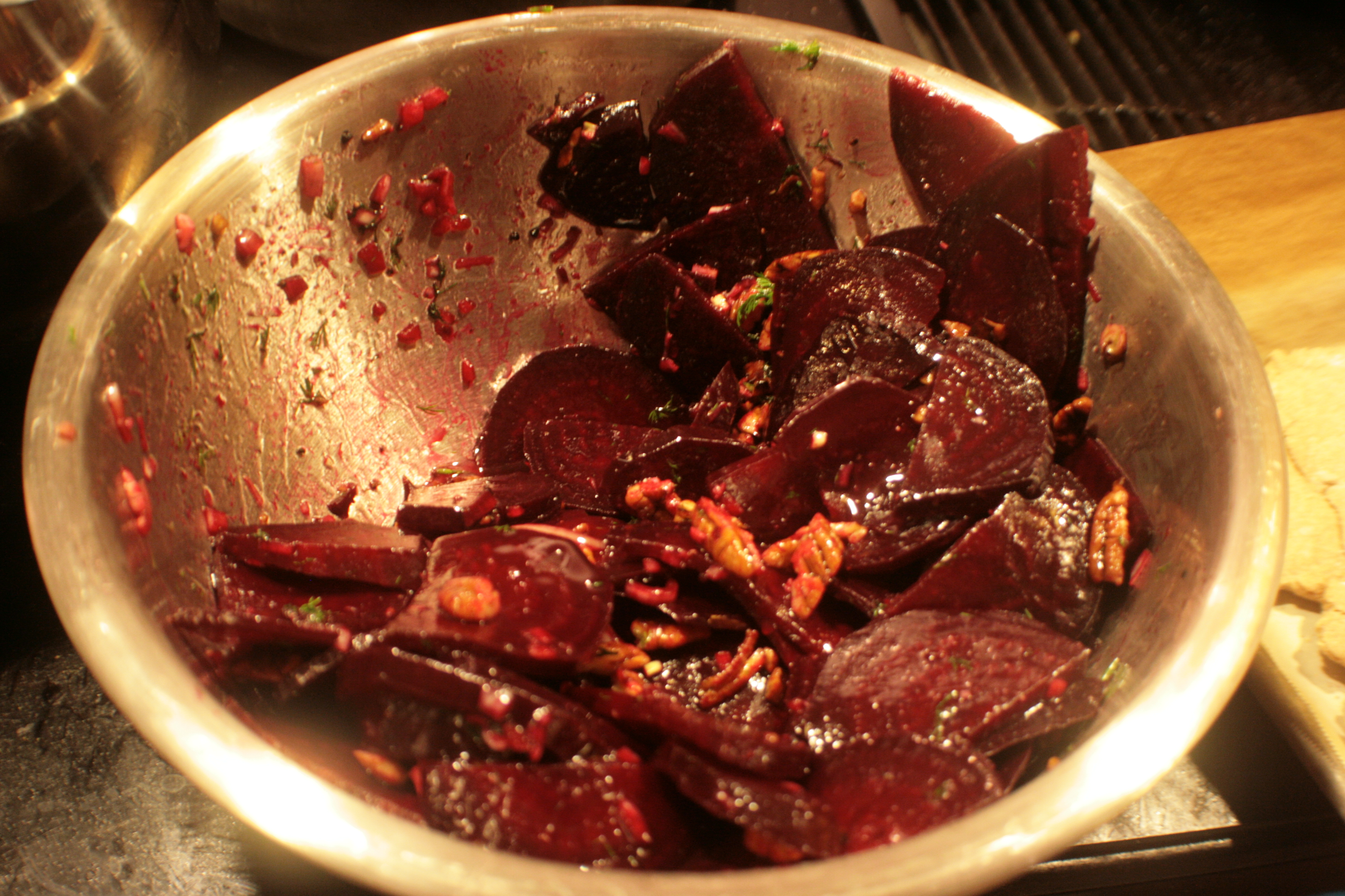 The day I took off and made the flatbread, that wasn’t all I made. I also decided to chip away at the beet problem we have in the fridge.