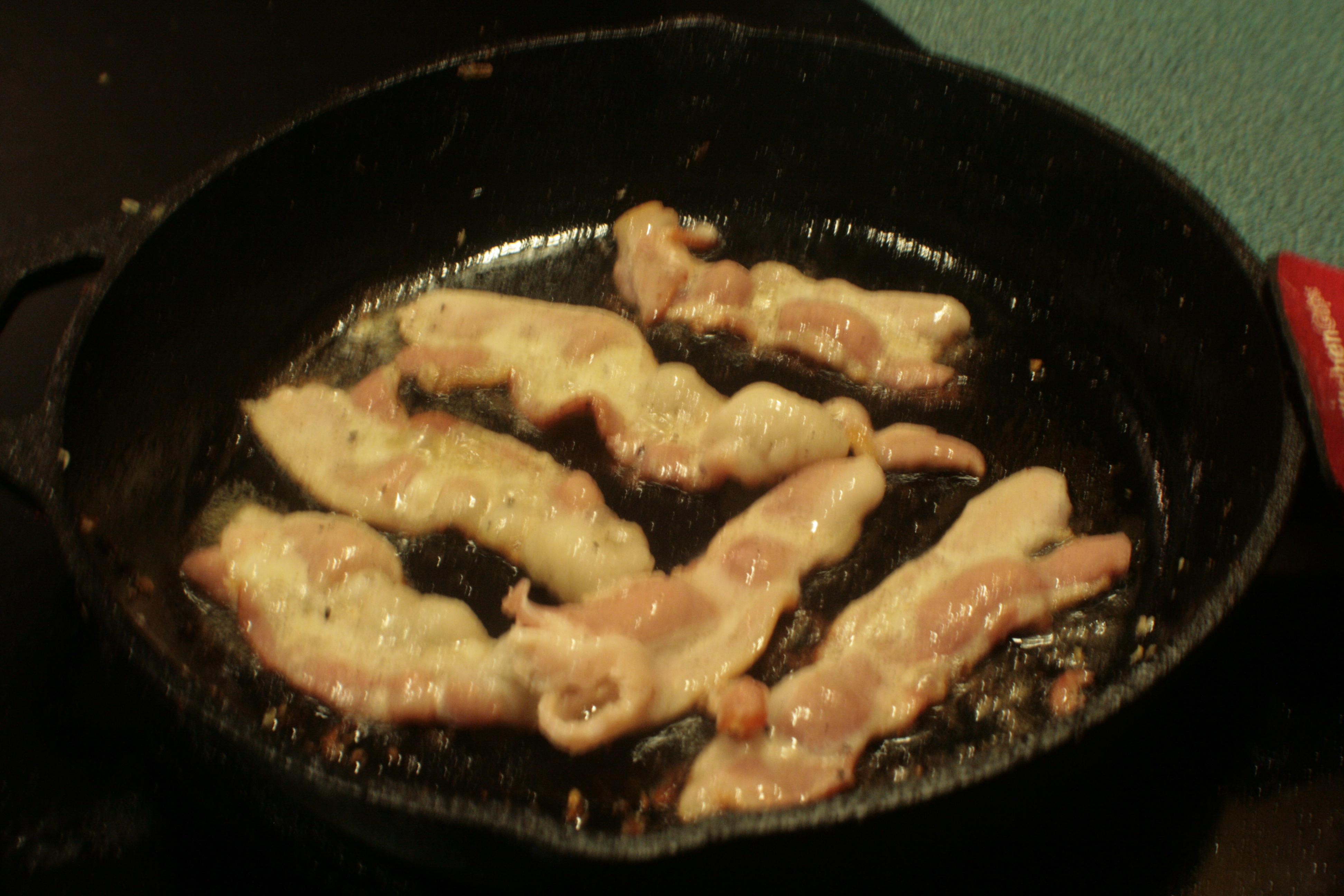 The recipe definitely called for chopping the bacon, then cooking it. I did it in the other order since that saved me from having to clean raw pork goo off a cutting board. I’m lazy like that.