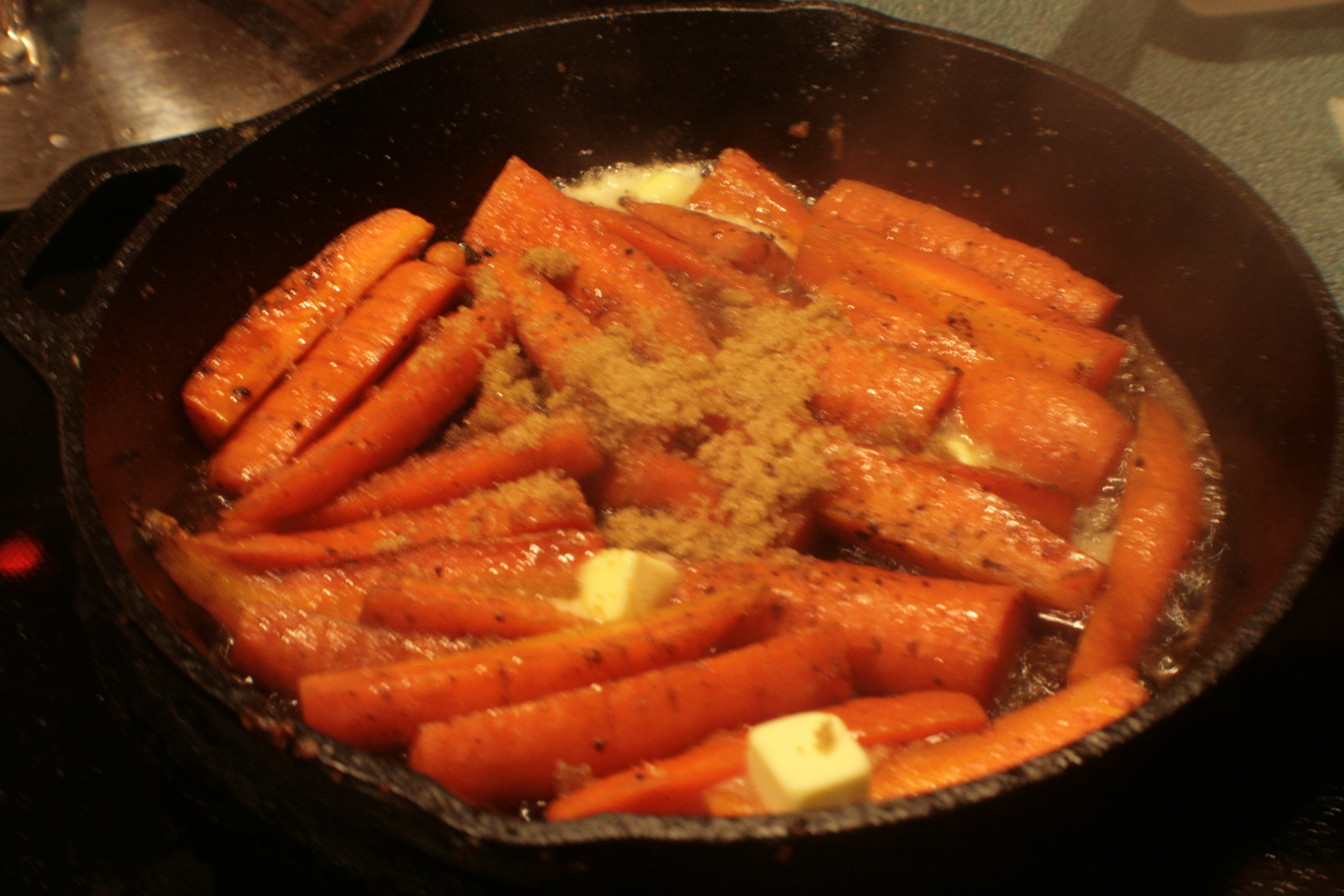 This was the part where my eyeballing of portions came the closest to getting me into trouble – the carrots didn’t quite fit into the cast iron skillet. I’m irrationally fond of cooking in that skillet, so even though we have another one where the size would work just fine, I sucked it up and made it work.