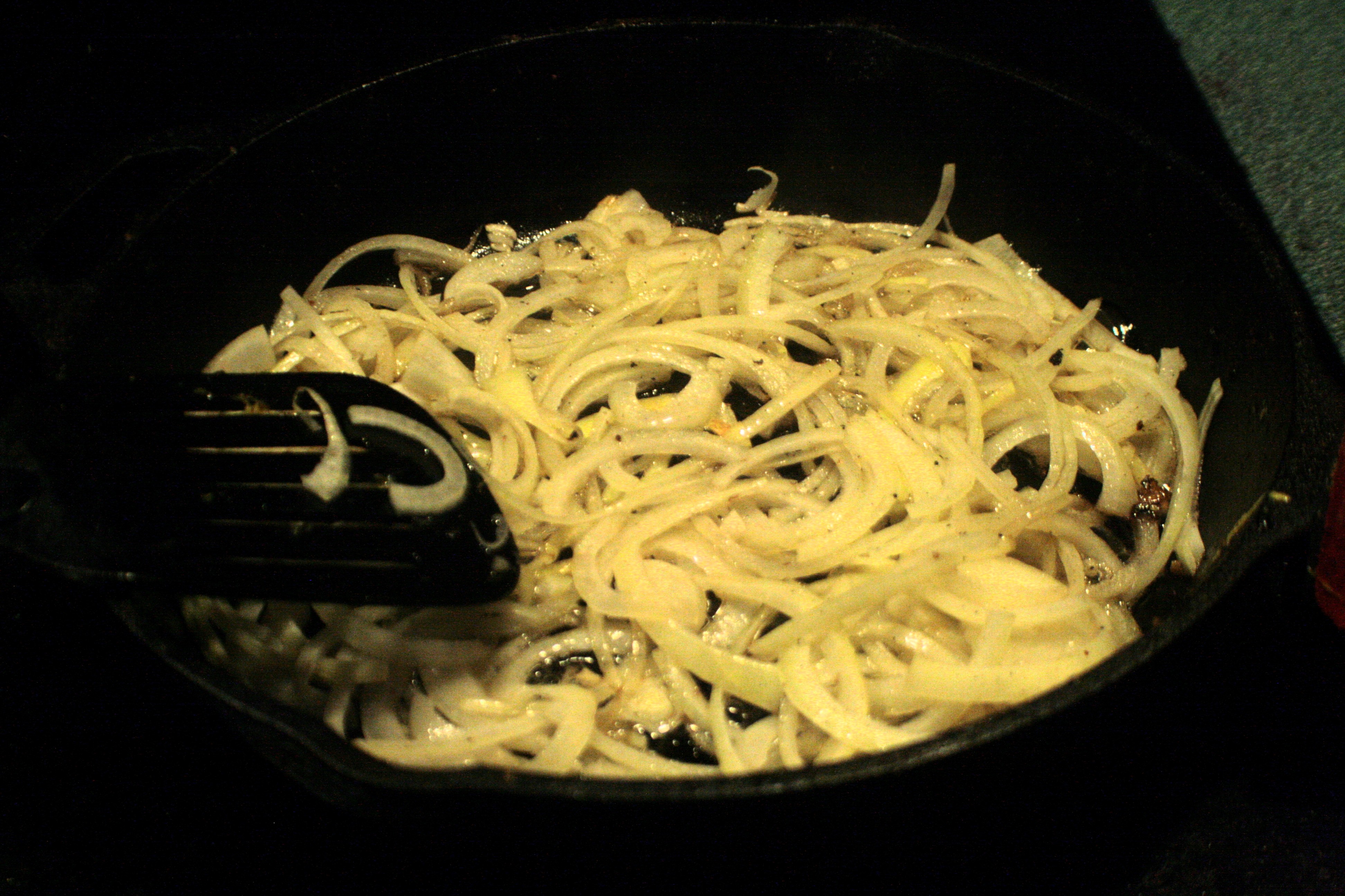 The first step, of course, is caramelizing the onions. Getting this right is mostly a matter of not overheating the onions and being patient. I tossed them into the skillet, then set to work making a marinade for the chicken.