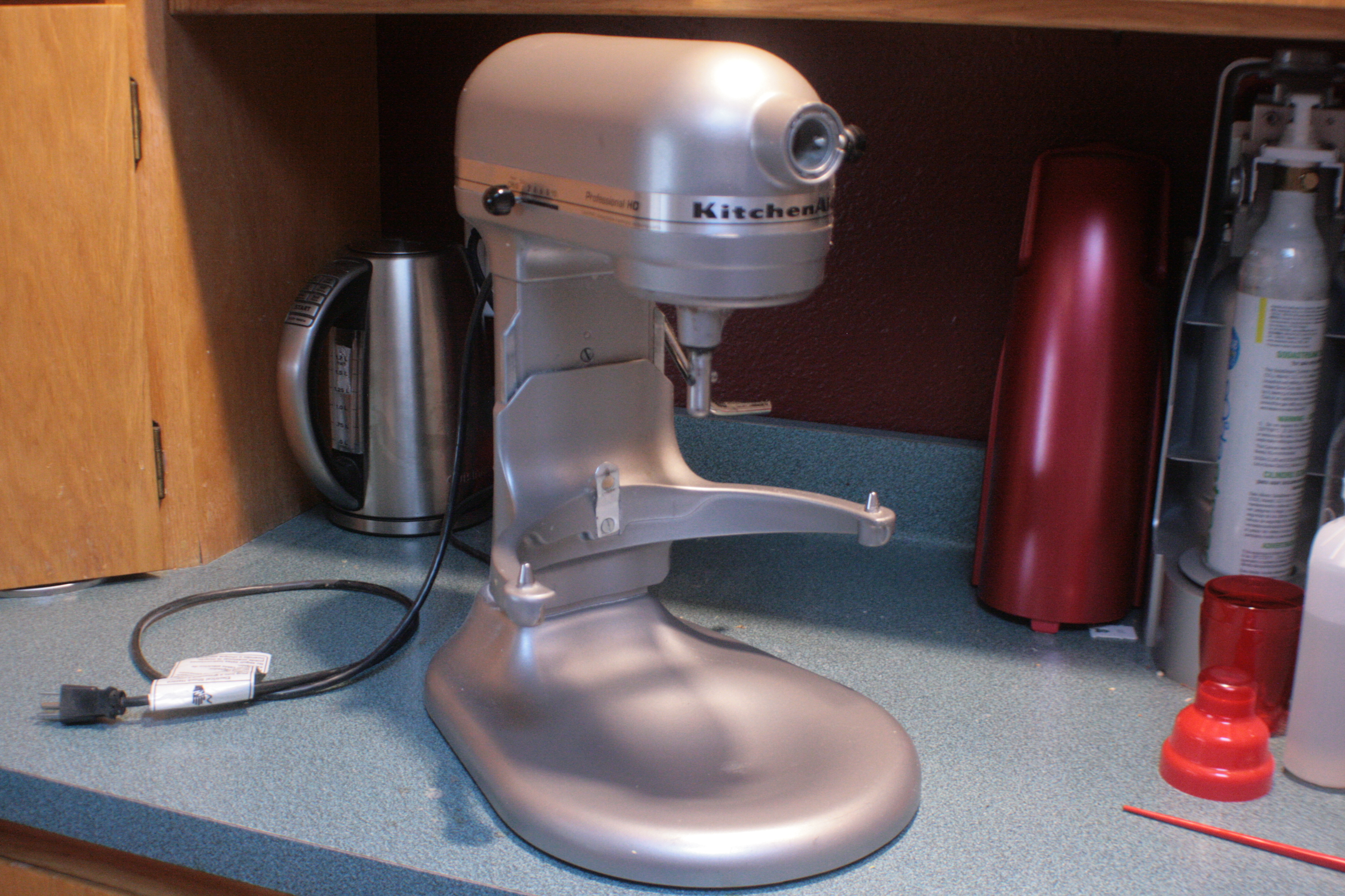 I didn’t even think about fixing the mixer until I was back from L.A. Or a few weeks after I was back from L.A. Or until May. Basically, it took the weight of all the yeast I wasn’t using, weighing down on me with tiny little yeast shrieks of “You bought us and we’re going to be wasted and never fulfil our culinary imperative to make things fluffy!” to put this high enough on my priority list to deal with.