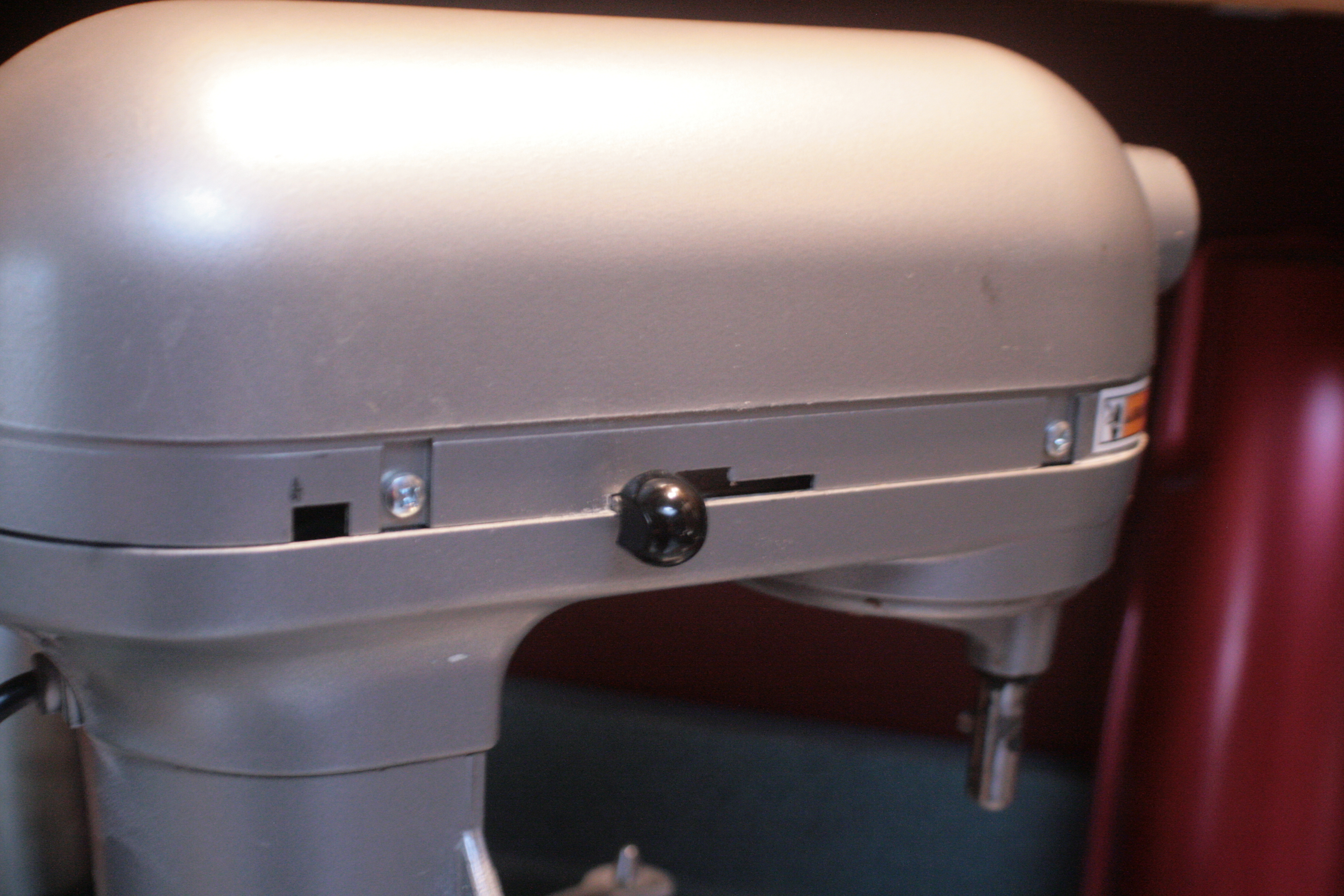 The inside of the mixer is pretty cool. I may have set it to run with the top off just to stare at it and see how the different bits interacted long enough to justify embarrassment. (May have. Certainly didn’t.) The horrible sounds had been coming from the front of the mixer, which is at the left of that picture, so I pushed onward in my disassembly.
