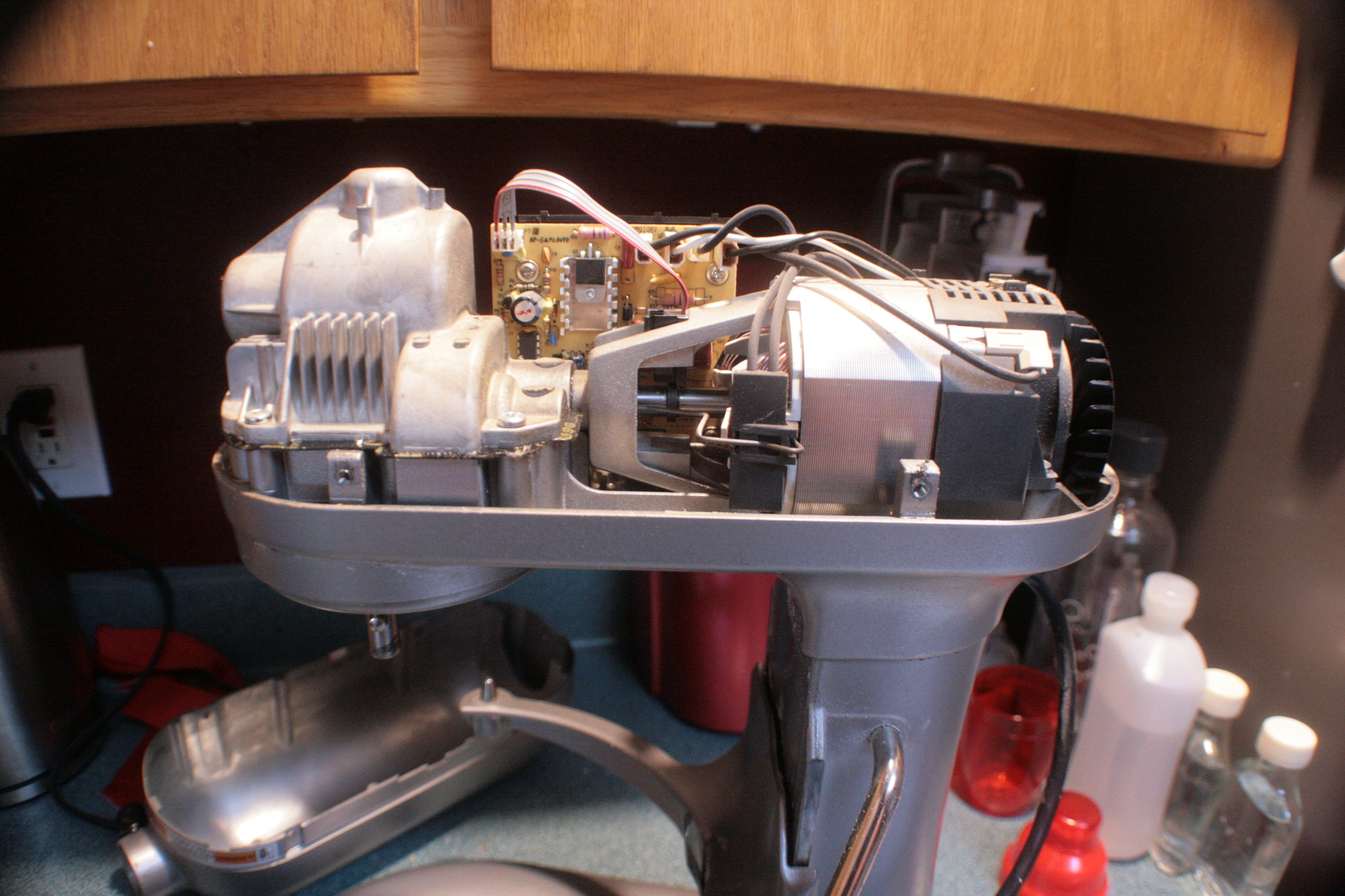 Two minutes into the kneading cycling, there’s a horrible grinding noise, and then the mixer refuses to rotate. At all. Even if there’s no resistance. My mixer is now more broken than it was in March before I started repairing it. I have no idea why. I also don’t care. I haven’t had troubleshooting/repairing a problem go on and spiral like this since I switched to Ubuntu lo these many years ago. I’m calling in a professional.